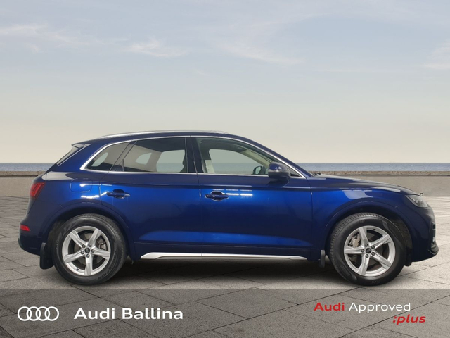 Now available at Connollys Audi Ballina, this stunning 2024 Audi Q5 is finished in NAVARRA BLUE METALLIC with a luxurious FULL BEIGE interior. Stylish, refined and packed with the latest technology, the Audi Q5 SE delivers the perfect combination of performance, comfort and everyday practicality. This low-mileage example has been carefully inspected and prepared by our factory-trained technicians, offering excellent efficiency, smooth driving dynamics and premium interior quality expected from an Audi. This vehicle is supplied through the Audi Approved :plus Programme, providing added reassurance and complete peace of mind for its next owner. If you’re looking for a premium, well-equipped and beautifully presented vehicle, this Audi is an excellent choice. Buying from Connolly’s Audi Ballina gives you peace of mind with: • Fully inspected vehicles • Flexible finance packages available • Trade-ins welcome • Nationwide Delivery Available Available now at Connollys Audi Ballina. Contact our sales team today to arrange a test drive or personalised video tour. • Bluetooth Interface • DAB Digital Radio Module • Touchscreen Stereo • Audi Stop/Start • Cruise Control • Alloy Wheels • Chrome Exterior Package • Metallic Paint • Heated Seats • Leather Interior • Lumbar Support • Auto Lights and Wipers • Child Locks • Remote Central Locking • USB • Front and Rear Park Sensors • Voice control • Speed Limiter • Apple Carplay/Android Auto • USB C sharging ports • Audi Connect • Audi Lane Assist • Audi Smartphone Interface • Audi Virtual Cockpit • Reverse Camera