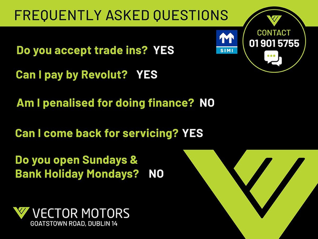 AT VECTOR MOTORS WE OFFER OUR RENOWNED 12 MONTHS / 12,000 KM'S COMPREHENSIVE IN HOUSE WARRANTY - PLEASE ASK OUR SALES TEAM FOR MORE INFORMATION. BESPOKE FINANCE OPTIONS AVAILABLE. PLEASE VISIT OUR WEBSITE FOR OUR FINANCE CALCULATOR AND 24 HOUR ONLINE APPLICATION FORM. CALL TODAY FOR MORE INFORMATION AND A PERSONALISED VIDEO OF THE VEHICLE FINANCE ARRANGED TRADE INS WELCOME SIMI REGISTERED DEALERSHIP CHECK OUT GOOGLE REVIEWS TO SEE WHAT OUR CUSTOMERS SAY DID YOU KNOW EVEN IF YOU ARE NOT BUYING A CAR FROM US THAT WE BUY CARS UP TO 6 YEARS OLD WITH LESS THAN 60K KMS? FILL IN THE “SELL YOUR CAR” FORM ON OUR WEBSITE FOR A QUOTE. • Car History Checked • Finance Available