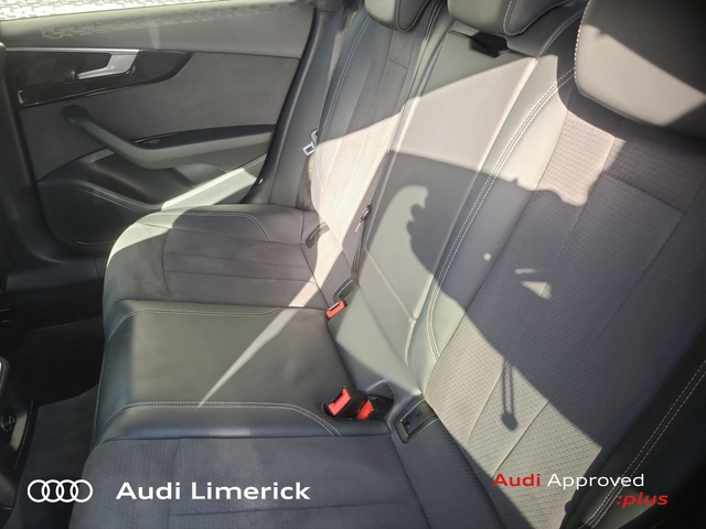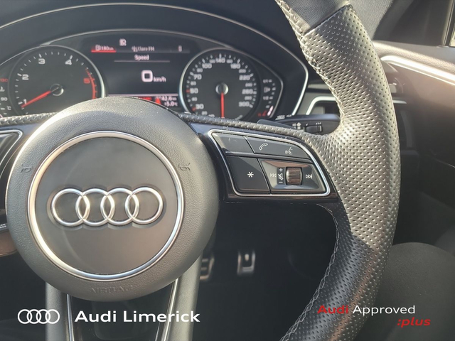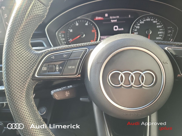 Audi A4 35TDI 163 S LINE COMPETITION • Audi Music Interface • Audi Sound System • Bluetooth Interface • Touchscreen Stereo • Audi Drive Select • Audi Stop/Start • Cruise Control • 19"Alloys • Black Styling Pack • High Gloss Black Grille • High Gloss Pack • Matt Black Radiator Grille and Number Plate Holder • Metallic Paint • S-Line Body Styling • Spoiler • Air Conditioning • Ambient Lighting • Armrest • Button Start-Stop • Door Opening Illumination Lights • Door Sills with Aluminium Inlays • Dual Climate control • Electric Mirrors • Electric Windows • Front Footwell Illumination • Front/Rear Floor Mats • Illuminated Vanity Mirror • Interior Lighting Pack • 3 Spoke Sports Steering Wheel • Headlining in Black Cloth • Lumbar Support • ABS • Active Lane Assist • Alarm • Anti-Lock Brake System • Auto Lights and Wipers • Deadlocks • Immobilizer • ISO Fix • LED Headlights • Light and Rain Sensor • Reverse Camera • Reversing Sensors • Apple CarPlay • Audi Smartphone Interface • Black Styling & Black Emblems • 7 Speed S-Tronic • Audi Lane Assist