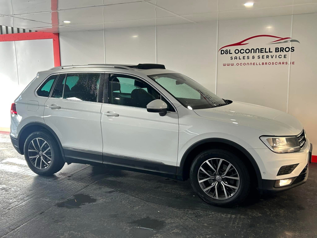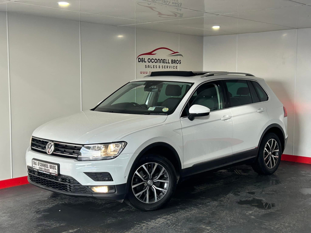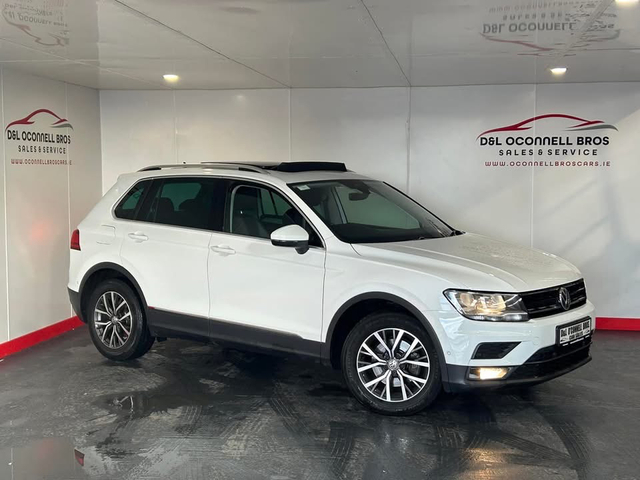 2019 (191) Volkswagen Tiguan 2.0 Tdi, Comfortline Model, White exterior, 6 speed manual transmission, Black/Grey cloth interior. service record, Two Owners From New, Irish car, Comes with Nct until July 2027, Road Tax Only €270 Per Year, Panoramic Sunroof, Rear privacy glass, Volkswagen multimedia interface, Bluetooth streaming & phone connection, Fog lights, LED rear lighting, Roof rails, Parking assist, Parking sensors & display, Multifunctional leather steering wheel, Adaptive Cruise control, Lane Assist, Isofix, Satellite Navigation, Auto dimming rear view mirror, Electric handbrake, On board computer, Android Auto & Apple Car Play, & Much More, Timing belt & waterpump recently replaced, Dealer warranty included, Finance available over 3/4/5 years apply online www.oconnellbroscars.ie Contact Diarmuid / Liam on 0851049227 6 Month Warranty, Trade in accepted, Central Locking, Electric Windows, Airbag, Centre Armrest, Roof Rails, Traction Control, Bluetooth, EBD, Isofix, Wireless Smartphone Control, Active Safety Braking / City Brake / Collision Alert, Stop/Start Button, 2 Keys, External Devices Connectivity, Cup holders, Remote boot/hatch/rear door release, Stability control