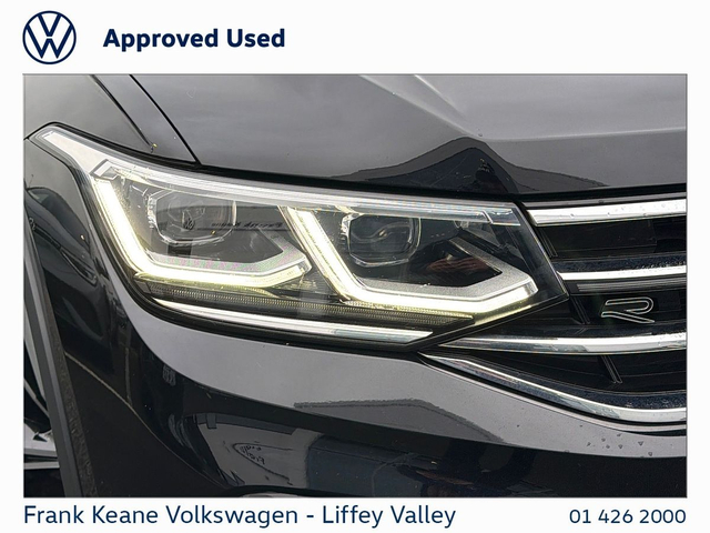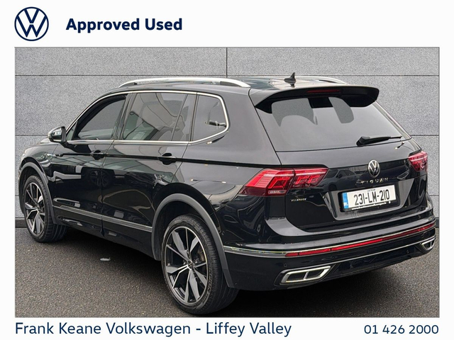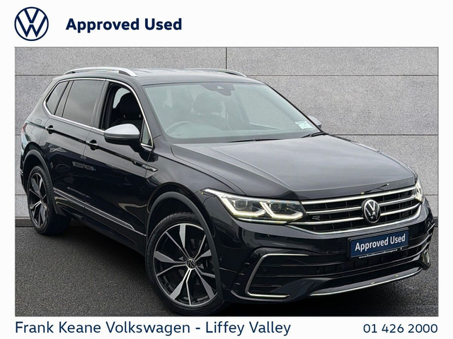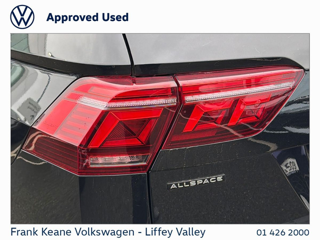 FRANK KEANE - Customer Driven Since '67. TIGUAN ALLSPACE R-line Auto at Frank Keane Volkswagen Liffey Valley, We have this 2023 Volkswagen Tiguan Allspace R-line Auto with only 57,797KM. Deep Black Pearl Metallic with a R-Line Art Velour Cloth Seat. Experience complete confidence with the Frank Keane Volkswagen Optional Pre-Owned Vehicle Protection Pack — including a 24-month warranty, 3-year Return to Invoice (RTI) investment protection, and 3-year paint, glass, and upholstery protection with LifeShine. Premium cover, expertly designed to protect your vehicle and your investment. To Learn more, speak to one of our Sales Team in Frank Keane Volkswagen Liffey Valley today. Specification that Includes • 20” Misano alloy wheels, • R-Line” Art Velour Cloth Seats, • R-Line Exterior Styling, • LED Headlights, • Front and Rear Parking Sensors, • Front Seats Heated, • Heated Steering Wheels, • Apple Car Play / Android Auto, • Push Start Button, • Dual -Zone Climate Control, • Privacy Glass, • Air-conditioning, • Automatic Lights, • Ambient Lighting, • Road Speed Sign Recognition. • Lane Assist, • USb-C Connectivity, • Large Boot, • ISOFIX Child Seat Mounts, • and much more! Please contact our Sales Team today for a Personalized Video of this Car, Digital Part Exchange Valuations and Tailored Funding Options to meet your needs on 01-4262000 or email [email protected] Frank Keane Volkswagen offers the highest levels of value and customer experience across both sales and service. Located at Liffey Valley Motor Mall, we ensure all our used vehicles are prepared to the highest of standards and come with a minimum of 12 months warranty. Call us 01-4262000 to arrange an appointment with our Sales Team. FRANKKEANEVOLKSWAGEN.IE