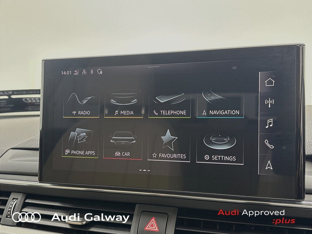Audi A5 €417 p/m - TDI 163HP SE AUTO • Audi Sound System • Bluetooth Interface • Hands Free Kit • MMI Radio Plus • Mobile Device Interface (Media-In) • Mobile Phone Preparation-Bluetooth • Satelitte Navigation • Touchscreen Stereo • Audi Drive Select • Audi Stop/Start • Auto Handbrake • Cruise Control • DSG • Sports Pack • Alloy Wheels • 18"Alloys • Chrome Exterior Package • Front Fog Lights • Headlight Washers • Metallic Paint • Air Conditioning • Armrest • Automatic Air Conditioning • Button Start-Stop • Climate Control • Drivers Information System • Electric Mirrors • Electric Mirrors Heated Memory • Electric Windows • Interior Lighting Pack • Onboard Computer • Rake/Reach Adjustable Steering Column • Split Fold Rear Seats • Upholstery and Seats • 3 Spoke Leather Multifunction S-Line Steering Wheel • 3 Spoke Sports Steering Wheel • Heated Seats • Leather Interior • Leather Steering Wheel • Lumbar Support • ABS • Active Lane Assist • Alarm • Anti-Lock Brake System • Auto Lights and Wipers • Child Locks • Daytime Running Lights • Electronic Stability Programme (ESP) • Front and Rear Park Assist • Front Side Airbags with Curtain Airbags • ISO Fix • ISO Fix Front Passenger and Rear Seat Preparation • Light and Rain Sensor • Locking Wheel Bolts • Multiple Airbags • Rear Park Assist • Reverse Camera • Reversing Sensors • Remote Central Locking • Remote Electric Tailgate Opening/Closing • Side Impact Protection • Xenon Headlights • Xenon with LED Daytime Running Lights • 12V Power Points in Front + Rear Centre Consoles • USB • Touch Screen Audi MMI Display • Ambient Multi-Color Lighting • Panoramic Sunroof