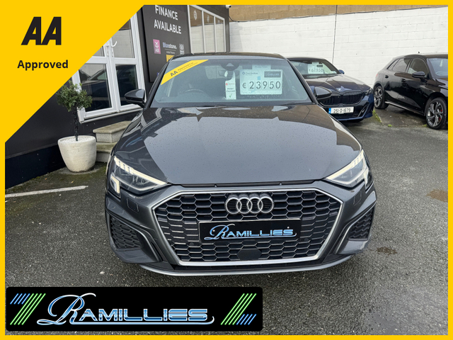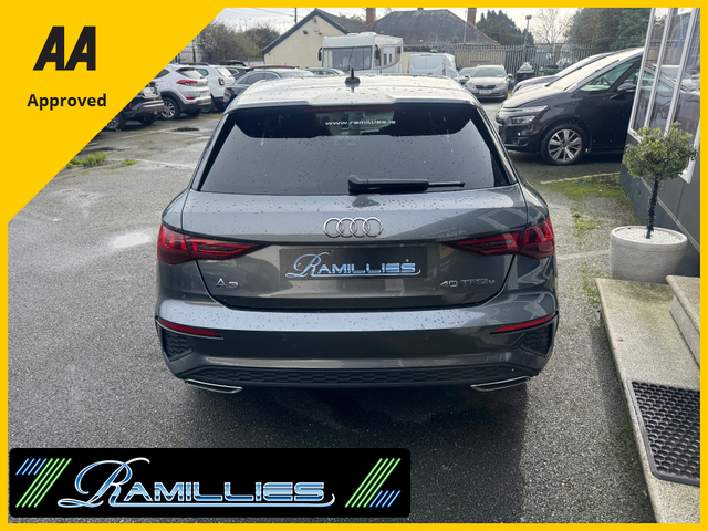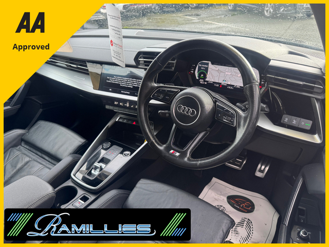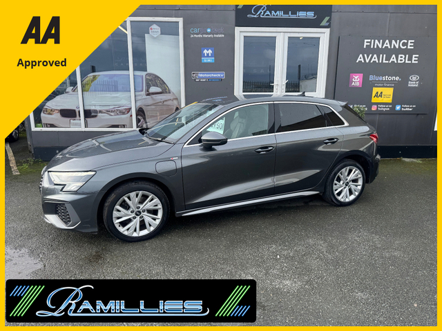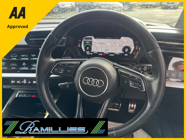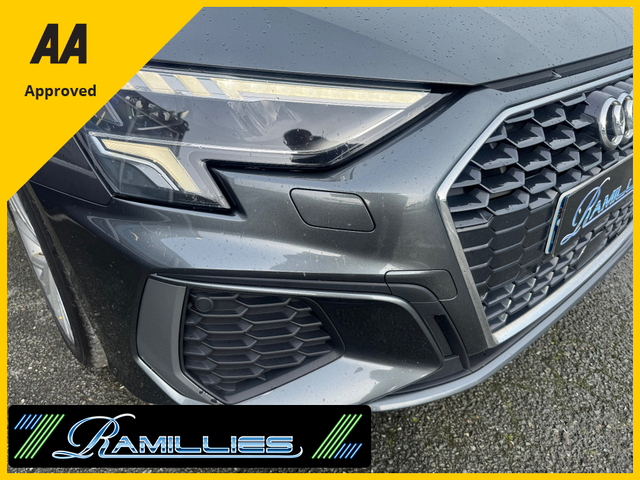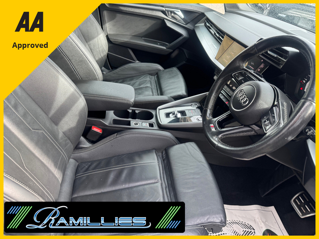 Stunning example of a 2021 Audi A3 1.4 40 TFSi E S-Line finished in eye catching Daytona Grey Vehicle Features * Full Audi Service History * Full Digital Cockpit * Audi Sound System * Lane Departure * Black Rock Twin Leather interior * L.E.D Headlights * Multi-function Steering wheel * HDD Sat NAV * Apple Car Play & Android Auto * Digital Climate Control with A/C * Rear Parking Sensors * Heated & Dimming Mirrors * 17" Original Audi S-Line Wheels * 2 Chargers Sale Features * S.I.M.I. Dealer * AA Approved Dealer * Full Vehicle Motorcheck report * 12 Months Nationwide Mechanical Warranty * 12 Months AA Breakdown Assist * 12 Months AA Membership * Free Home Delivery (T&C's) * Online Finance Available * Approved Credit Intermediary for all major finance houses Central Locking, Electric Windows, Airbag, Rear Spoiler, Privacy Glass, Centre Armrest, Multi-function steering wheel, Satellite Navigation, Traction Control, Metallic Paint, Anti-Theft System, Parking Sensors, Bluetooth, EBD, Isofix, Active Safety Braking / City Brake / Collision Alert, Stop/Start Button, External Devices Connectivity, Cup holders, Remote boot/hatch/rear door release, Stability control