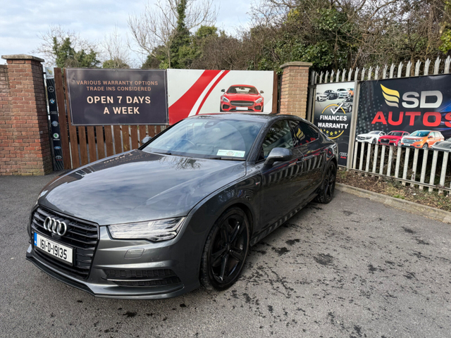 2016 Audi A7 3.0TDI Black EDT Fully Loaded . Big screen SAT/NAV, Heads-up display, BOSSE sound system. Full service history. Two keys. VIEWINGS ONLY BY APPOINTMENT AVAILABLE 7 DAYS A WEEK ———————————————————— TRADE-INS CONSIDERED VARIOUS FINANCES AND WARRANTY OPTIONS ———————————————————- Air conditioning, Climate control, Dual zone climate control, Armrest, Keyless entry, Electrically adjustable seats, Electric boot, Electric side mirrors, Electric windows, Electric handbrake, Heated seats, Lumbar support, Multi-function steering wheel, Rain sensor, Spare tyre, Bluetooth, CD, 12v power outlet, Radio, Touch screen display, USB connection (front), Cruise control, Hill hold assist, Navigation system, Front parking sensors, Rear parking sensors, Remote boot release, Start-stop system, Voice control, Alloy wheels, Leather steering wheel, Spoiler, Sports seats, Tinted windows, Adaptive headlights, Auto lights (dusk sensor), Daytime running lights, LED headlights, ABS, Anti collision system, Alarm system, Emergency brake assist, Central locking, Remote central locking, Driver-side airbag, Immobilizer, Isofix, Tyre pressure monitor, Passenger-side airbag, Seat belt warning, Side airbag, Stability control, Traction control, 4WD, Sport suspension