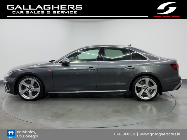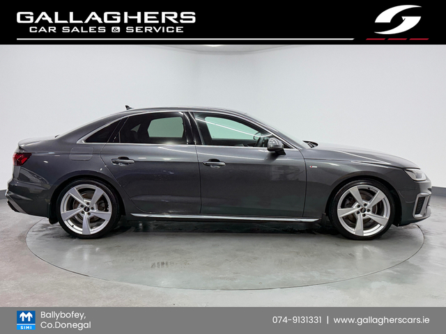 2022 (222) AUDI A4 S LINE 2.0 MHEV 35 163BHP AUTOMATIC LOW MILES *trade in price €36995* - LED LIGHTING - REAR VIEW CAMERA - VIRTAUL DASHBOARD - SAT NAV - APPLE CAR PLAY - HEATED HALF LEATHER - PADDLE SHIFTERS - AIR CONDITIONING - CRUISE CONTROL - BLUETOOTH - 2 KEYS - SERVICE HISTORY - FREE NATIONWIDE DELIVERY AVAILABLE - NATIONWIDE WARRANTY - FINANCE AVAILABLE VIA OUR WEBSITE PAUL 087 3009930 CATHAL 087 4440077 OFFICE 074 9131331 GALLAGHERS CARS DONEGAL ROAD BALLYBOFEY DONEGAL F93A6C1 6 Month Warranty, Air Conditioning, Central Locking, Electric Windows, Airbag, Alarm, Alloy Wheels, Cruise Control, Electric Mirrors, Immobiliser, Half Leather, Privacy Glass, Heated Seats, Automatic Wipers, Automatic Lights, Centre Armrest, Multi-function steering wheel, Climate Control, Satellite Navigation, Traction Control, Metallic Paint, Multiple Air Bags, Parking Sensors, Bluetooth, Remote Central Locking, Electronic handbrake, Folding rear seats, Isofix, History Checked, Finance Checked, Apple Car Play, Android Auto, Mirror Link, Heated Front Seats, Wireless Smartphone Control, Active Safety Braking / City Brake / Collision Alert, Stop/Start Button, Drive Mode Selector, Dual Zone Climate Control, Daytime Running Lights, Main Dealer Service History, External Devices Connectivity, Cup holders, Remote boot/hatch/rear door release, Stability control
