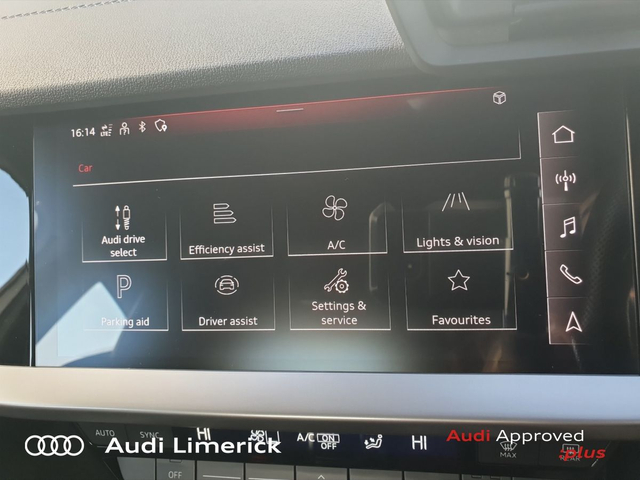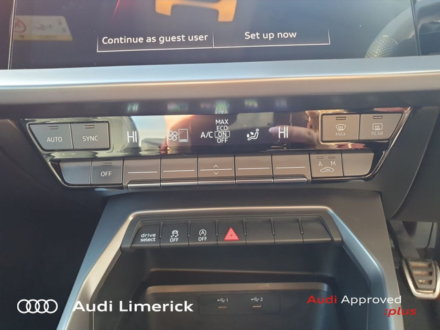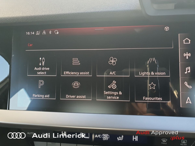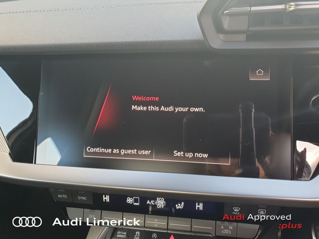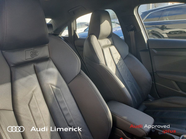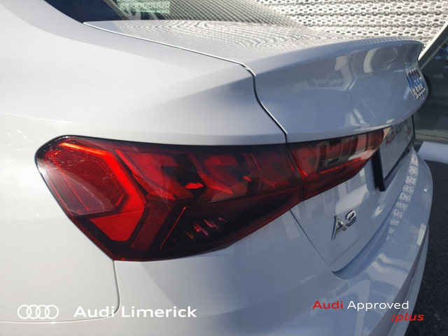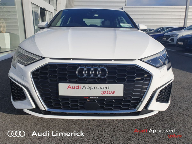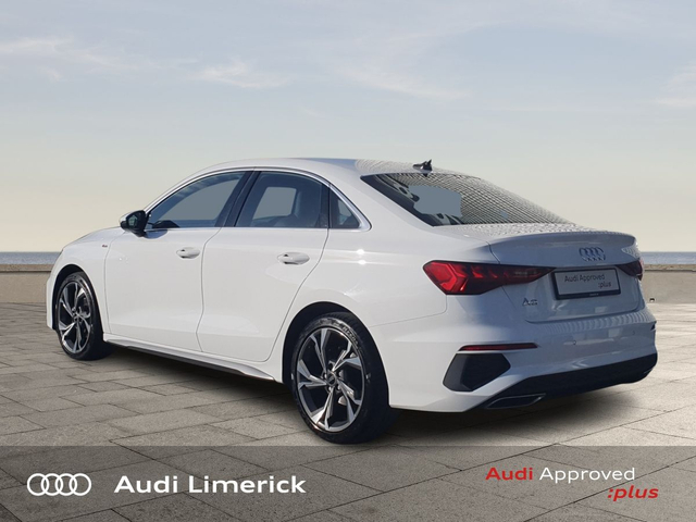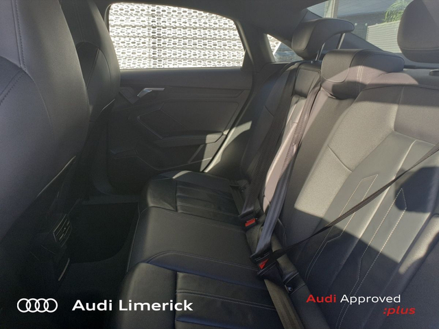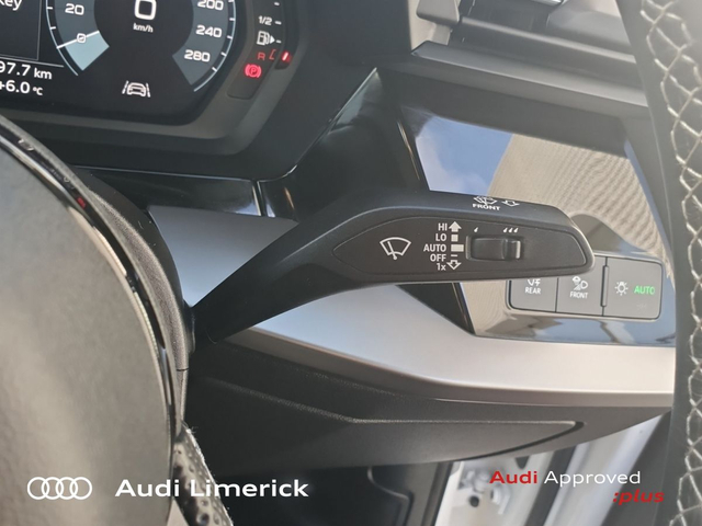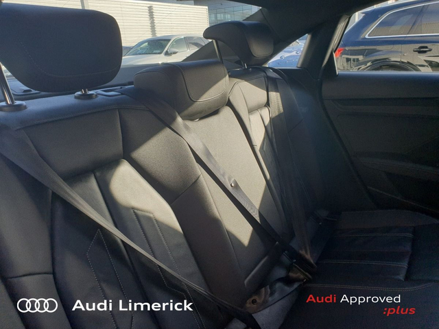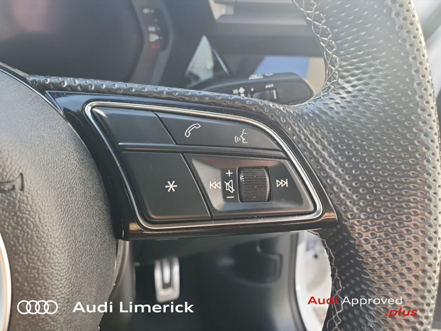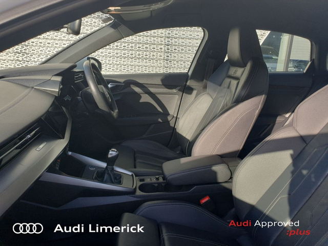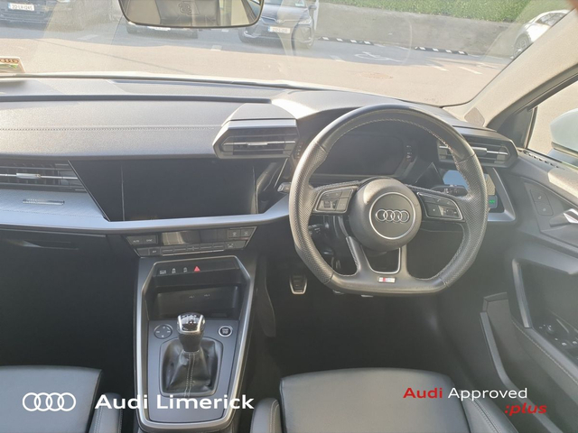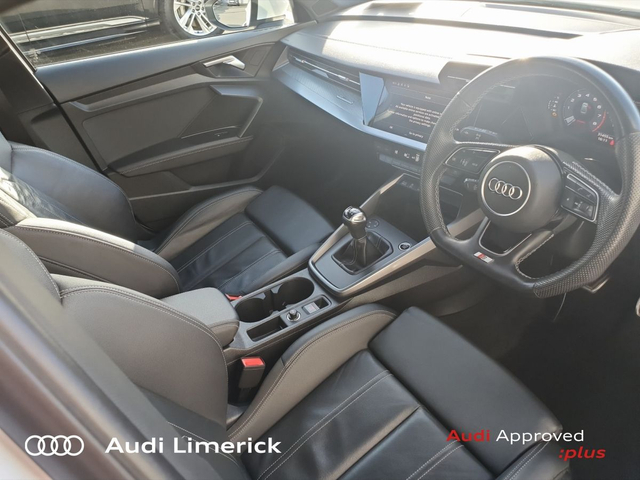 Audi A3 30 TFSI 110HP S Line • Audi Music Interface • Audi Sound System • Bluetooth Interface • Touchscreen Stereo • Audi Drive Select • Audi Stop/Start • Cruise Control • 18"Alloys • Body Coloured Door Mirrors • S-Line Body Styling • Spoiler • Air Conditioning • Armrest • Colour Driver Information system • Door Sills with Aluminium Inlays • Dual Climate control • Electric Mirrors • Electric Windows • Front Footwell Illumination • Front/Rear Floor Mats • Illuminated Vanity Mirror • 3 Spoke Sports Steering Wheel • Headlining in Black Cloth • Leather Interior • ABS • Active Lane Assist • Alarm • Anti-Lock Brake System • Child Locks • Deadlocks • ISO Fix • LED Headlights • Light and Rain Sensor • Rear Park Assist • Reversing Sensors • Apple CarPlay • Audi Smartphone Interface