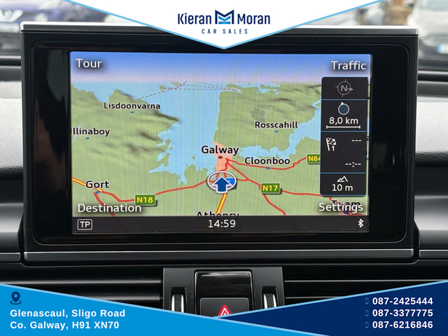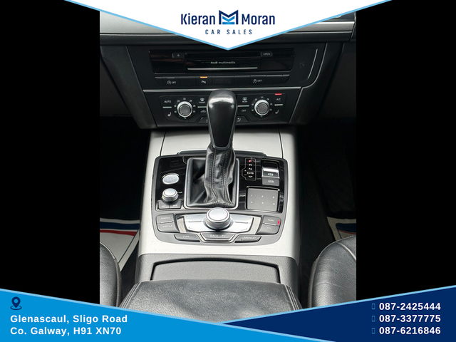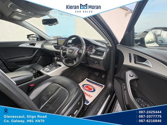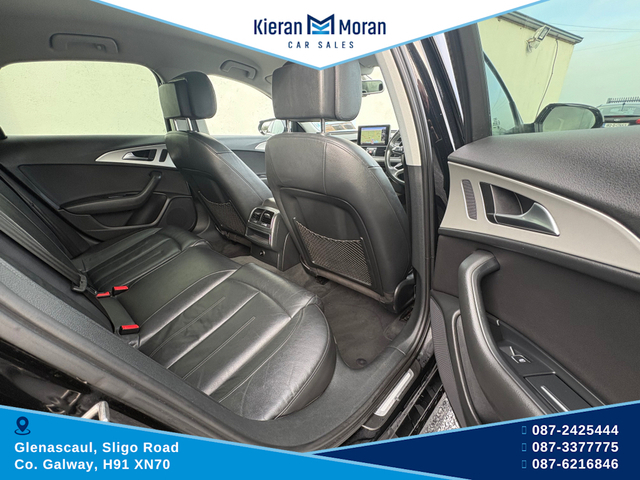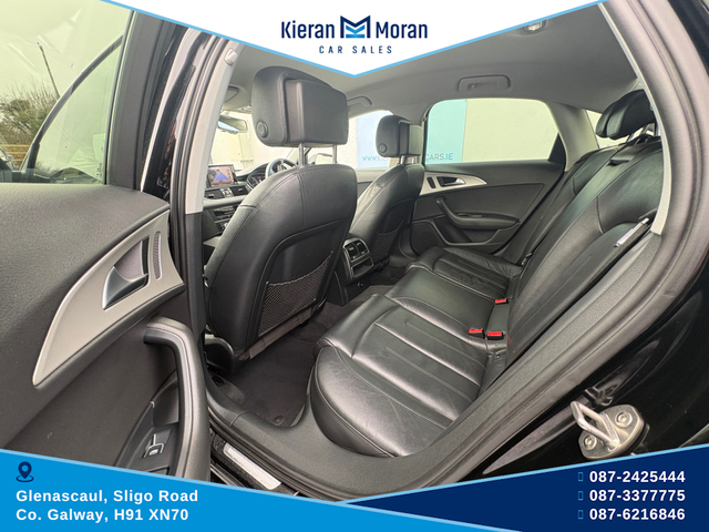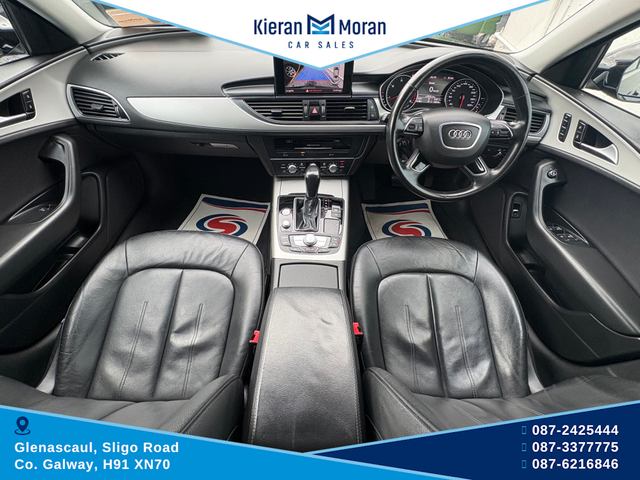 LOW LOW MILAGE!!!!! Amazing Audi A6 2litre Auto in stock and now for sale. A stunning car both inside and outside, this Audi offers space and safety with top class reliability and built quality. Finished in Scwartz Black with 18" Audi Alloy Wheels, this car comes with an Automatic Gearbox, Parking Sensors Front and Rear, Reversing Camera, Electric Windows, Darkened Rear Windows, Electric Folding/Heated Mirrors, Auto Lights and Remote Boot Release. Features Inside Include Full Black Leather Interior Heated Front Seats Multifunction Steering Wheel Bluetooth Handsfree Cruise Control LED Trip Computer Adjustable Steering Column Pop-Up LED Centre Console Toggle Controls Bluetooth Handsfree Audi Multimedia Bluetooth Media AM/FM Radio CD Player Push Button Start Dynamic Drive Settings Multiple 12v Plugs 2x Cup Holders Adjustable Arm Rest Isofix Rear Seats Rear Centre Armrest Spacious Boot Area Maintained to a very high standard, with an especially clean and fresh feeling interior, this Audi does not disappoint in terms of performance and style. A must see car to appreciate. For more information and all our stock visit www.kieranmorancars.ie Or Call 0872425444 0873377775 0876216846 3 Month Warranty, Central Locking, Electric Windows, Airbag, Centre Armrest, Multi-function steering wheel, Satellite Navigation, Traction Control, Metallic Paint, Anti-Theft System, Parking Sensors, Bluetooth, EBD, Isofix, Active Safety Braking / City Brake / Collision Alert, Stop/Start Button, Touch Screen Media Control, External Devices Connectivity, Cup holders, Remote boot/hatch/rear door release, Stability control
