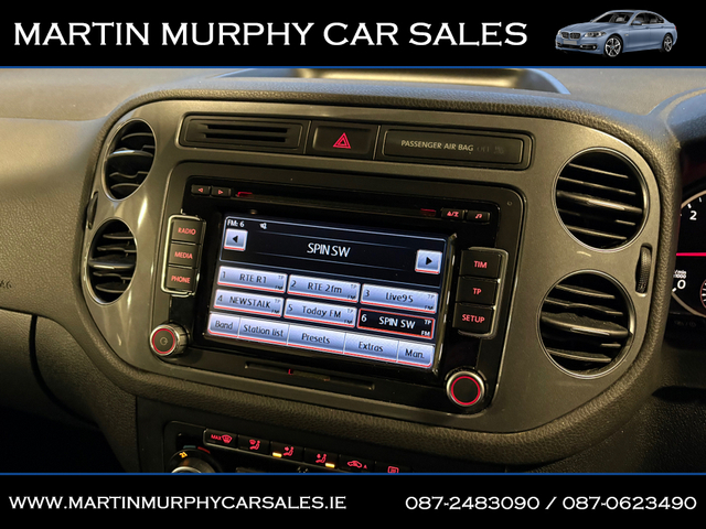 205 VOLKSWAGEN TIGUAN LIFE&LEISURE 2.0 TDI 110 BHP - Irish car from new - Two previous owners - 177,000 km's / 110,000 miles - Full service record - Timing belt kit replaced - NCT tested until 03/2027 - Annual road tax €280 - Two keys - Park assist - Touch screen radio - Alloys - Front & rear sensors - Air con - Finance available - Trade ins accepted - Dealer warranty MARTIN MURPHY CAR SALES, KILKEARY, NORWOOD NENAGH, CO TIPPERARY Central Locking, Electric Windows, Airbag, Cruise Control, Fog Lamps, Privacy Glass, Centre Armrest, Multi-function steering wheel, Roof Rails, Traction Control, Metallic Paint, Parking Sensors, Bluetooth, EBD, Isofix, Active Safety Braking / City Brake / Collision Alert, Stop/Start Button, External Devices Connectivity, Cup holders, Remote boot/hatch/rear door release, Stability control