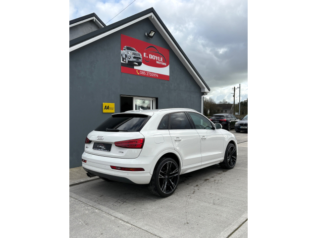 2018 Audi Q3 Sport 1.4 TFSI petrol manual Mint condition inside and out. Comes registered onto youre county reg current reg PXZ 5498 €17950 87950 miles / 141550 kms Comes with 2 year NCT Just serviced Timing belt done 3 month warranty with extention available 12 month free AA rescue plus New clutch and flywheel Upgraded alloys with good tyres Daytime running lights Chrome trims Bluetooth / USB Multifunction steering wheel Parking sensors Cruise control Loads more extras, call or message for more information or to arrange a viewing. Finance available and trade in welcome Central Locking, Electric Windows, Airbag, Fog Lamps, Rear Spoiler, Centre Armrest, Multi-function steering wheel, Roof Rails, Satellite Navigation, Traction Control, Metallic Paint, Anti-Theft System, Parking Sensors, Bluetooth, EBD, Isofix, Active Safety Braking / City Brake / Collision Alert, Stop/Start Button, External Devices Connectivity, Cup holders, Remote boot/hatch/rear door release, Stability control
