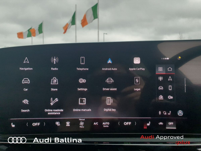 Now available at Connollys Audi Ballina, this stunning 2026 Audi A6 is finished in MYTHOS BLACK METALLIC with a luxurious FULL BLACK LEATHER interior. Stylish, refined and packed with the latest technology, the Audi A6 SLINE delivers the perfect combination of performance, comfort and everyday practicality. This low-mileage example has been carefully inspected and prepared by our factory-trained technicians, offering excellent efficiency, smooth driving dynamics and premium interior quality expected from an Audi. This vehicle is supplied through the Audi Approved :plus Programme, providing added reassurance and complete peace of mind for its next owner. If you’re looking for a premium, well-equipped and beautifully presented vehicle, this Audi is an excellent choice. Buying from Connolly’s Audi Ballina gives you peace of mind with: • Fully inspected vehicles • 12 Month Warranty • Flexible finance packages available • Trade-ins welcome • Nationwide Delivery Available Available now at Connollys Audi Ballina. Contact our sales team today to arrange a test drive or personalised video tour. • Audi Music Interface • Bluetooth Interface • DAB Digital Radio Module • MMI SAT Nav • Touchscreen Stereo • Audi Drive Select • Audi Stop/Start • Adaptive Cruise Control • Alloy Wheels • Black Styling Pack • Metallic Paint • S-Line Exterior Pack • Ambient Lighting • Button Start-Stop • 3 Spoke Sports Steering Wheel • Heated Seats • Leather Interior • Lumbar Support • ABS • Active Lane Assist • Anti-Lock Brake System • Audi Matrix LED Headlights • Child Locks • Hill Hold Assist • ISO Fix • Reverse Camera • Remote Central Locking • Full Service History • USB • Front and Rear Park Sensors • Voice control • Speed Limiter • Apple Carplay/Android Auto • USB C sharging ports • Audi Connect • Audi Lane Assist • Audi Smartphone Interface • Audi Virtual Cockpit • MMI Navigation Plus with MMI Touch • Reverse Camera • USB charging ports