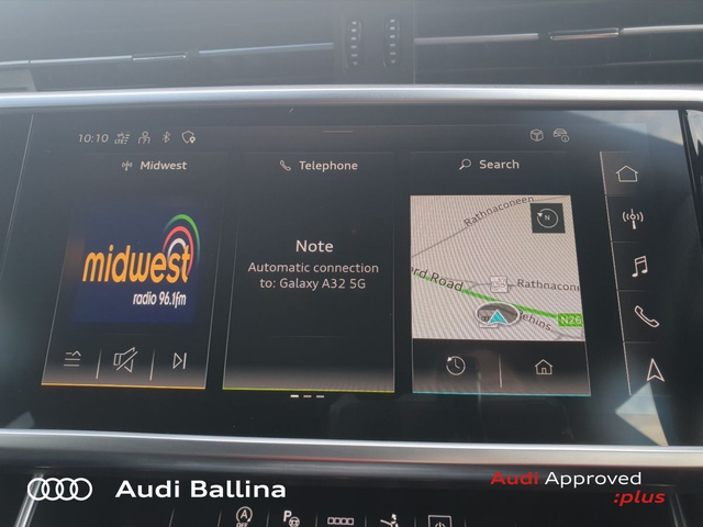 Now available at Connollys Audi Ballina, this stunning 2023 Audi A7 is finished in MYTHOS BLACK METALLIC with a luxurious SPORT BLACK interior. Stylish, refined and packed with the latest technology, the Audi A7 SLINE delivers the perfect combination of performance, comfort and everyday practicality. This low-mileage example has been carefully inspected and prepared by our factory-trained technicians, offering excellent efficiency, smooth driving dynamics and premium interior quality expected from an Audi. This vehicle is supplied through the Audi Approved :plus Programme, providing added reassurance and complete peace of mind for its next owner. If you’re looking for a premium, well-equipped and beautifully presented vehicle, this Audi is an excellent choice. Buying from Connolly’s Audi Ballina gives you peace of mind with: • Fully inspected vehicles • 12 Month Warranty • Flexible finance packages available • Trade-ins welcome • Nationwide Delivery Available Available now at Connollys Audi Ballina. Contact our sales team today to arrange a test drive or personalised video tour. • Audi Music Interface • Bluetooth Interface • DAB Digital Radio Module • MMI SAT Nav • Touchscreen Stereo • Cruise Control • Quattro Four Wheel Drive • 20"Alloys • Black Styling Pack • Metallic Paint • S-Line Body Styling • S-Line Exterior Pack • Tinted Windows • Button Start-Stop • 3 Spoke Sports Steering Wheel • Alarm • Anti-Lock Brake System • Auto Lights and Wipers • Child Locks • Reverse Camera • Remote Central Locking • USB • Speed Limiter • Apple Carplay/Android Auto • USB C sharging ports • Audi Connect • Audi Lane Assist • Audi Smartphone Interface • Audi Virtual Cockpit • MMI Navigation Plus with MMI Touch • Reverse Camera • USB charging ports