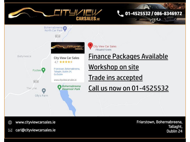 All of our cars come fully serviced and with valid or new NCT or DOE certificates and an in-house aftersales warranty. Third party extended warranty packages are available on most vehicles also. We can provide a Cartel or Motorcheck History with every vehicle. WE ARE AUTHORISED CREDIT INTERMEDIARIES AND FINANCE CAN BE ARRANGED QUICKLY (POOR CREDIT HISTORY OR NO PREVIOUS CREDIT HISTORY IS NOT A PROBLEM). WHY NOT TRY OUR NO OBLIGATION ONLINE FINANCE APPLICATION AT OUR WEBSITE - WWW.CITYVIEWCARSALES.IE For further information please call or email Carl Mooney anytime***Our opening hours are Monday to Friday 9 till 1 & 2 till 6 and Saturdays 10 till 2***After hours viewings by appointment only***Some cars that have just come into stock may not have the NCT or DOE carried out yet but will do prior to purchase Air Conditioning, Central Locking, CD Player, Electric Windows, Airbag, Electric Mirrors, Immobiliser, Traction Control, Metallic Paint, Multiple Air Bags, Anti-Theft System, Remote Central Locking, EBD, Folding rear seats, Isofix, Active Safety Braking / City Brake / Collision Alert, External Devices Connectivity, Cup holders, Stability control