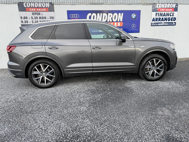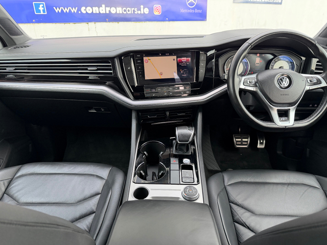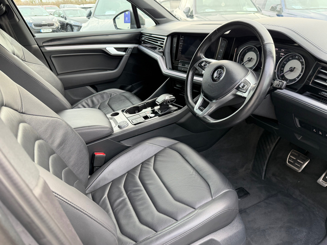 2019- 191 VOLKSWAGEN TOUAREG 3.0 TDI V6 R-LINE AUTO 285BHP,2 KEYS,2 SEAT COMMERICAL,PRICE IS PLUS VAT,FULL LEATHER INTERIOR, HEATED SEAT,SAT NAV,REAR PARKING CAMERA,20" ALLOYS,PAN ROOF,FULL R LINE INTERIOR AND EXTERIOR STYLING,SOLD FULLY SERVICED WITH NEW DOE AND VAT INVOICE,FINANCE ARRANGED PROMPT DECISION,FULL SPEC SUV IN EXCELLENT CONDITION IN SIDE AND OUT,CALL 0599147619 TO ARRANGE A VIEWING AND TEST DRIVE. Central Locking, Electric Windows, Airbag, Rear Spoiler, Privacy Glass, Centre Armrest, Multi-function steering wheel, Roof Rails, Satellite Navigation, Traction Control, Metallic Paint, Anti-Theft System, Parking Sensors, Bluetooth, EBD, Isofix, Active Safety Braking / City Brake / Collision Alert, Stop/Start Button, Touch Screen Media Control, External Devices Connectivity, Cup holders, Remote boot/hatch/rear door release, Stability control