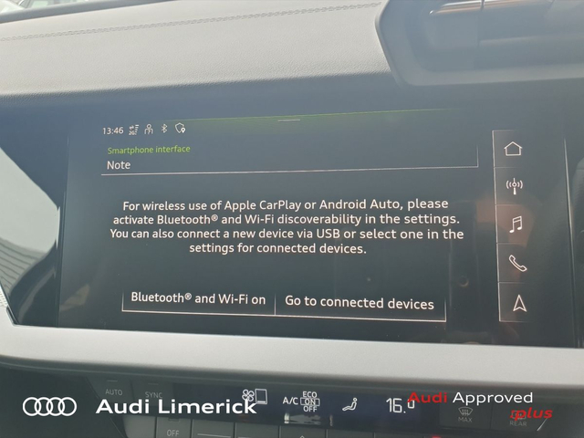 Audi A3 *SAVE €5800 VS NEW * A3 SAL 30 TDI 115HP S LINE • Bluetooth Interface • Touchscreen Stereo • Audi Drive Select • Audi Stop/Start • Adaptive Cruise Control • 18"Alloys • Climate Control • Illuminated Vanity Mirror • Multi-Function Steering Wheel • Rake/Reach Adjustable Steering Column • Tinted Privacy Glass to Rear of B-Post • Leather Interior • ABS • Anti-Lock Brake System • Child Locks • Daytime Running Lights • ISO Fix • Reverse Camera • Reversing Sensors • Audi Smartphone Interface • Audi Virtual Cockpit • Audi Lane Assist • USB charging ports