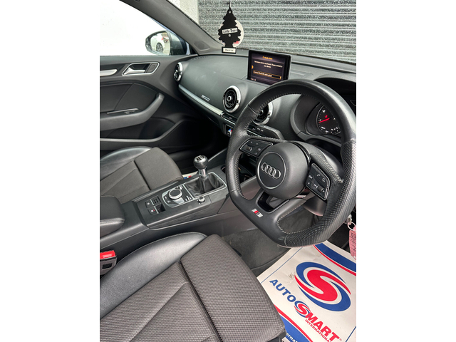2018 AUDI A3 S LINE BLACK EDITION PACK TOP SPEC FLAT BOTTOM WHEEL 6 SPEED MANUAL FINISHED IN VERY RARE AND SOUGHT AFTER DAYTONA GREY WITH BLACK HALF LEATHER SEATS FLAT BOTTOM WHEEL ONLY COVERED 125K MILES FROM NEW 1.6 TDI 105BHP 2 REMOTE KEYS ALL BOOKS MANUALS ETC NCT/TAX SPEC INCLUDES: FLAT BOTTOM STEERING WHEEL BRAND NEW ALLOYS MAXTON GLOSS BLACK KIT ALL USUAL S LINE REFINEMENTS UPGRADED ALLOYS AND TYRES FULL BLACK EDITON PACK HALF LEATHER HEATED SEATS MULTIFUNCTIONAL STEERING WHEEL FRONT AND REAR PARKING SENSORS AUTO LIGHTS ELECTRIC HANDBRAKE CRUISE CONTROL CLIMATE CONTROL BLUETOOTH PLUS ALL USUAL EXTRAS SERIOUS VALUE FOR MONEY AT €20995 INCLUDING ALLOYS TRADES INS CONSIDERED RING FOR ANYMORE DETAILS OR TO ARRANGE A VIEWING 0894239084 NATIONWIDE WARRANTY IS EXTENDABLE TO 6 MONTHS 12 MONTHS OR 24 MONTHS FREE BREAKDOWN ASSISTANCE WITH MOST WARRANTIES RING ANYTIME TO ARRANGE A VIEWING IF NO ANSWER PLEASE WHATSAPP OR TEXT AND I WILL CALL YOU BACK VIEWING STRICTLY BY APPOINTMENT ONLY ANYTIME CHECK OUT R1 AUTOS ON SOCIALS CARD PAYMENT TO SECURE DEPOSIT TRADE INS CONSIDERED FULL CLEAN HISTORY CHECK INDOOR VIEWING AVAILABLE WARRANTY AVAILABLE DELIVERY AVAILABLE WALK AROUND VIDEOS AVAILABLE Air conditioning, Armrest, Keyless entry, Electric side mirrors, Electric windows, Electric handbrake, Multi-function steering wheel, Spare tyre, Android Auto, Apple CarPlay, Bluetooth, 12v power outlet, Radio, USB connection (front), Cruise control, Rear parking sensors, Remote boot release, Start-stop system, Alloy wheels, Leather steering wheel, Sports seats, Tinted windows, Daytime running lights, Fog lights, LED headlights, ABS, Anti collision system, Emergency brake assist, Central locking, Remote central locking, Driver-side airbag, Immobilizer, Isofix, Tyre pressure monitor, Passenger-side airbag, Seat belt warning, Side airbag, Stability control, Traction control, Sport suspension