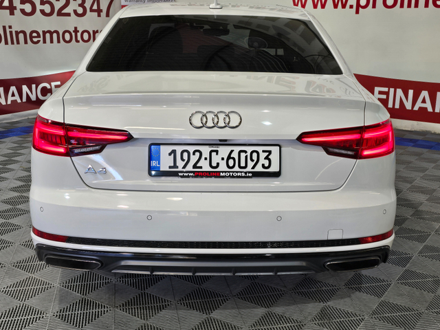 Just Arrived at Proline Motors! 2019 (192) Audi A4 S-Line Technology Immaculate Condition 49k Miles Huge Spec Must Be Seen This stunning 192 Audi A4 S-Line Technology is presented in immaculate condition inside and out. With only 49k miles, full S-Line styling, and a massive factory specification, this car offers luxury, performance, and presence in one perfect package. A proper high-spec example with wide digital display and premium comfort throughout. Key Features 2.0 TDI Diesel 49k Miles S-Line Technology Model Full S-Line Exterior & Interior Pack Wide Display / Digital Dash (Virtual Cockpit) Apple CarPlay Ambient lighting Reversing camera Satellite Navigation Heated Front Seats Heated Rear Seats Electric Memory S-Line Seats Flat-Bottomed Multi-Function Steering Wheel Adaptive Matrix Headlights Xenon Headlights LED Daytime Running Lights Rear Privacy Glass Electric Heated Mirrors Lane Assist Park Assist (Self-Parking) Alloy Wheels Immaculate Condition Throughout Straight Sale Price €28,995 Included with This Vehicle Fully Serviced Comprehensive Pre-Sale Inspection Verified History Report Nationwide Warranty Available FREE Nationwide Delivery All Trade-Ins Accepted Finance Available Appointment-Based Showroom --- www.prolinemotors.ie 021 455 2347 WhatsApp 085 103 3442 Proud AIBF Business All-Star Accredited Dealer Proline Motors Unit 8, Mayfield Business Park, Cork Central Locking, CD Player, Electric Windows, Airbag, Centre Armrest, Multi-function steering wheel, Traction Control, Metallic Paint, Parking Sensors, Bluetooth, EBD, Isofix, Active Safety Braking / City Brake / Collision Alert, Stop/Start Button, External Devices Connectivity, Cup holders, Remote boot/hatch/rear door release, Stability control