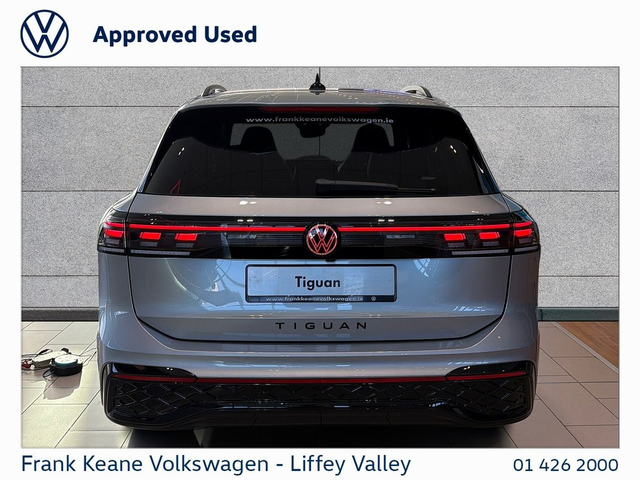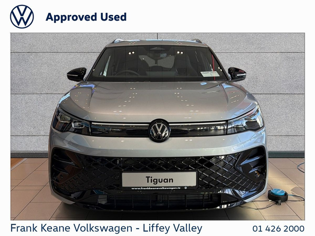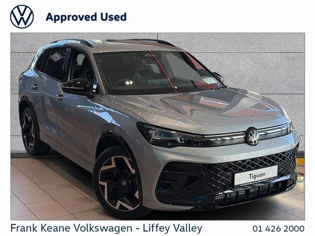 FRANK KEANE - Customer Driven Since '67. TIGUAN R-Line 75 at Frank Keane Volkswagen Liffey Valley, We have this 2026 Volkswagen Tiguan R-Line 75 Pre Reg Special with only Delivery Kms. Finished in Dolomite Silver Metallic with an R-Line” Cloth Soul Black Seats. Experience complete confidence with the Frank Keane Volkswagen Optional Pre-Owned Vehicle Protection Pack — including a 24-month warranty, 3-year Return to Invoice (RTI) investment protection, and 3-year paint, glass, and upholstery protection with LifeShine. Premium cover, expertly designed to protect your vehicle and your investment. To Learn more, speak to one of our Sales Team in Frank Keane Volkswagen Liffey Valley today. Specification that Includes • Alloy Wheels, • Park Camera, • Privacy Glass, • Blind Spot Indicators, • Silver Roof Rails, • 3-Zone Climate Control, • LED Plus Headlamps, • Illuminated Moulding Front Grille, • Ambient Lighting, • Black Headlining, • Heated Front Seats, • Heated Seats Rear, • Heated Steering Wheel, • Cornering Lights, • Sport Front Seats, • 12.9" Large Infotainment Display, • Digital Cockpit Dials, • Apple Carplay and Android Auto, • Rear View Camera, • ISOFIX Child Seat Mounts • and much more! Please contact our Sales Team today for a Personalized Video of this Car, Digital Part Exchange Valuations and Tailored Funding Options to meet your needs on 01-4262000 or email [email protected] Frank Keane Volkswagen offers the highest levels of value and customer experience across both sales and service. Located at Liffey Valley Motor Mall, we ensure all our used vehicles are prepared to the highest of standards and come with a minimum of 12 months warranty. Call us 01-4262000 to arrange an appointment with our Sales Team. FRANKKEANEVOLKSWAGEN.IE