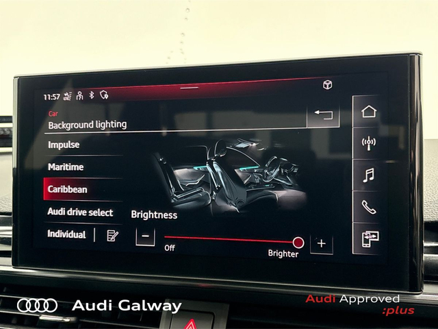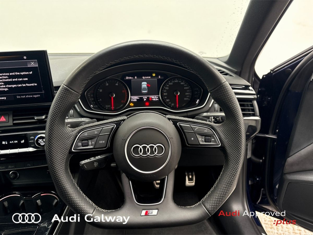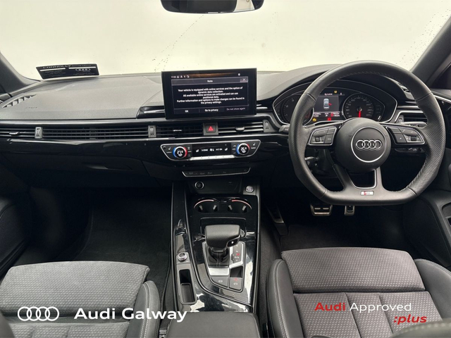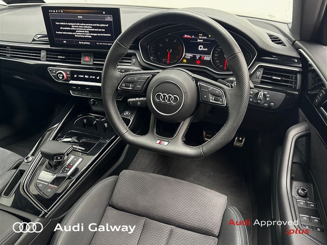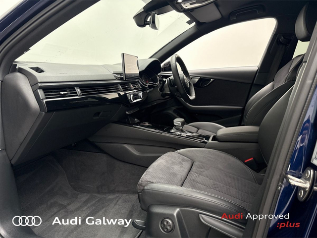 Audi A4 €421 p/m - TDI 163HP S-LINE A/T • Bluetooth Interface • Touchscreen Stereo • Audi Drive Select • Audi Stop/Start • Cruise Control • 19"Alloys • High Gloss Black Grille • High Gloss Pack • Metallic Paint • S-Line Exterior Pack • Spoiler • Tinted Windows • Automatic Air Conditioning • Button Start-Stop • Dual Climate control • Electric Mirrors • Electric Windows • Heated Seats • Leather Interior • Lumbar Support • Active Lane Assist • Reversing Sensors • Xenon with LED Daytime Running Lights • Touch Screen Audi MMI Display • Keyless Entry • Audi Connect • Reverse Camera