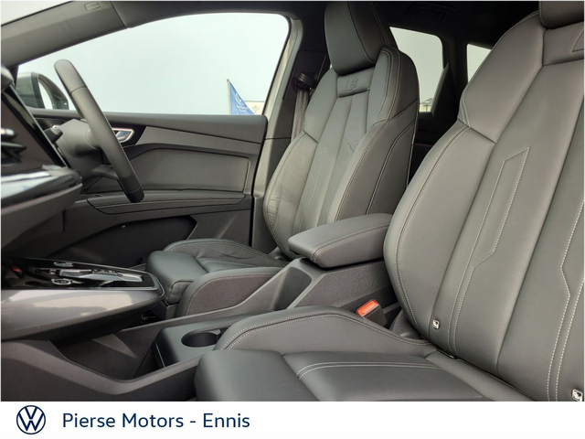 Audi Q4 e-tron Q4 E-Tron S Line 45 286bhp Electric 82kWh • Air Conditioning • Armrest • Climate Control • Cruise Control • Dual Climate Control • Electric Mirrors • Media Connection • Multi-Function Steering Wheel • Satellite Navigation • Split Fold Rear Seats • USB • Auto Handbrake • Auto Lights and Wipers • Front Parking Sensors • Rear Parking Sensors • Reversing camera • Xenon Headlights • 20' Alloys • Leather Interior • Android Auto • Apple Car Play
