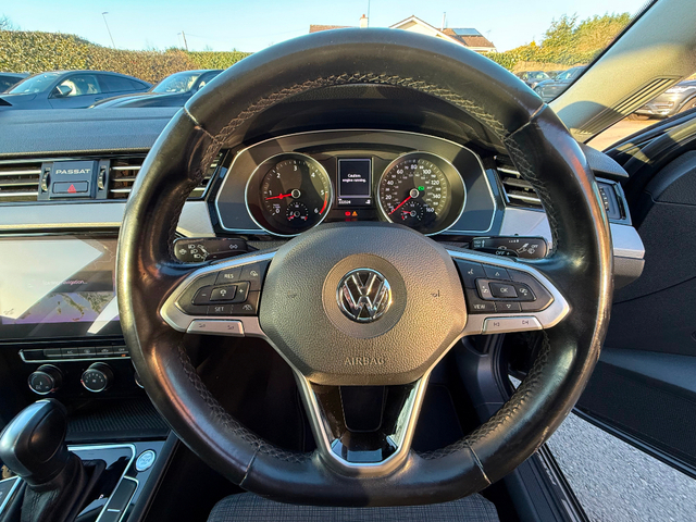*ONLY TEN MINUTES FROM BLANCHARDSTOWN SHOPPING CENTRE* 2019 (192) VW Passat 1.6 TDI 120BHP SE Nav Auto in immaculate condition throughout with an excellent service record and great spec to include: upgraded alloy wheels, parking sensors, folding mirrors, rear privacy glass, cruise control, sat nav, sport seats, auto lights & wipers, bluetooth telephone system, touch screen media control unit, Sat Nav, front centre armrest, abs, esp, isofix, multiple airbags etc. For further information, please contact Adam on 01 8017777 / 083 3983490