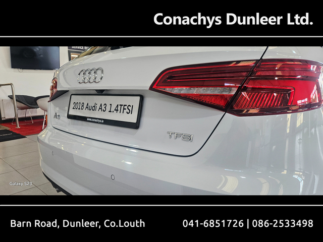 A immaculate 2018 Audi A3 1.4TFSI Sportback, Vehicle comes fully serviced , Valeted and 6 Months warranty and new NCT, Only covered 43043 kms From New. Finance can be arranged . Please call or WhatsApp 0862533498 for more details... 6 Month Warranty, Air Conditioning, Central Locking, Immaculate condition, Electric Windows, Airbag, Alloy Wheels, Cruise Control, Electric Mirrors, Fog Lamps, Immobiliser, Privacy Glass, Centre Armrest, Luggage Cover, Multi-function steering wheel, Climate Control, Traction Control, Multiple Air Bags, Anti-Theft System, Parking Sensors, Bluetooth, Remote Central Locking, Electronic handbrake, Folding rear seats, Hill holder, Roadside assistance, History Checked, Finance Checked, Reversing Camera, Wireless Smartphone Control, Active Safety Braking / City Brake / Collision Alert, Stop/Start Button, Touch Screen Media Control, Drive Mode Selector, Dual Zone Climate Control, Daytime Running Lights, 2 Keys, Cup holders, Stability control