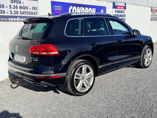 2015- 152 VOLKSWAGEN TOUAREG 3.0 TDI V6 AUTO R-LINE 262 BHP 5 SEAT CREW CAB, DOE 9/26, €333 ROAD TAX, 2 KEYS, FULL BLACK LEATHER INTERIOR, HEATED ELECTRIC MEMORY SEATS,PRIVACY GLASS, SAT NAV,REAR PARKING CAMERA, TOW BAR,JEEP IN EXCELLENT CONDITION IN SIDE AND OUT,CALL 0599147619 TO ARRANGE A VIEWING AND A TEST DRIVE. Air Conditioning, Air bags, Anti theft system, Bluetooth, Central locking, Electric windows, Electronic brakeforce distribution (EBD), Fog lights, Multi Function Steering Wheel Controls, Parking Sensors, Power steering, Privacy Glass, Roof Rails, Traction control (ASR)