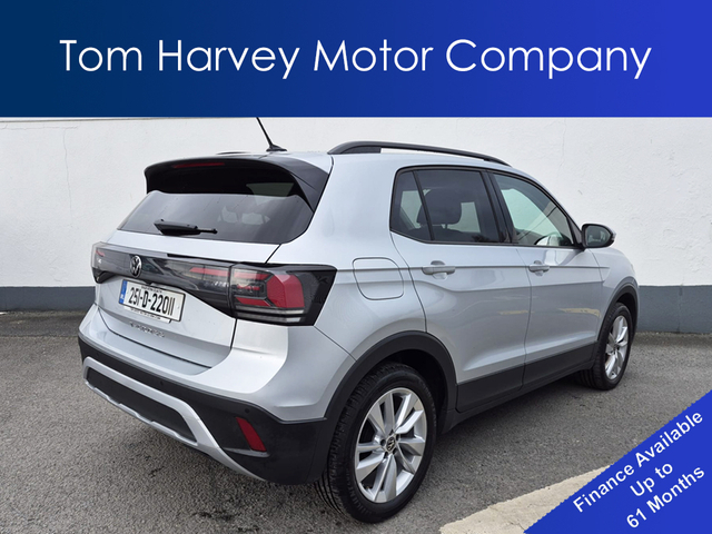Just in! A 2025 Volkswagen T-Cross Edition 75 1.0TSi 95hp finished in Reflex Silver metallic teamed with 17" Bangalore alloys Features on this popular compact petrol SUV include full park sensors, rear view camera, keyless access, touch screen media system with wireless Android auto/Apple Car Play, bluetooth and USB connectivity, multi function steering wheel with adaptive cruise control, LED headlights, aircon, factory tinted glass, electric windows and much more! Finance is available up to 61 months For more information please call Andrew or TJ on 0504 21244 Central Locking, Electric Windows, Airbag, Cruise Control, Privacy Glass, Centre Armrest, Multi-function steering wheel, Roof Rails, Traction Control, Parking Sensors, Bluetooth, Isofix, Apple Car Play, Android Auto, Active Safety Braking / City Brake / Collision Alert, Stop/Start Button, External Devices Connectivity, Cup holders, Stability control