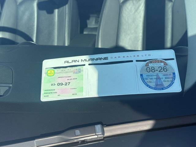 AUDI A3 SALOON 1.4 TFSI AUTOMATIC (2016) €16,950 JUST 88,759 KMS 1 previous owner Mint car through out Finance arranged (subject to approval) apply on our website alanmurnanecarsales.com Nationwide delivery arranged Watsapp video of vehicle available on request Loaded with extras Glacier white(Best Colour) Just 88,759 KMS NCT 09-2027 Tax 08-2026 3 month warranty (extended warranty available) Full cartell history report Loaded with a host of extras Up graded Alloy Wheels Front fog lights Day time running lights Rear parking sensors Rear privacy glass Satellite navigation Black leather seats Drive mode selector Cruise control Onboard computer Multifunction steering wheel Multifunction steering wheel Centre armrest Electric windows Electric mirrors Abs brakes Air conditioning Bluetooth Aux port Isofix Stop start function Electric handbrake 6 speed transmission Genuine Audi floor mats Fully valeted and serviced through out Nationwide delivery arranged After hours viewings by appointment only Central Locking, Electric Windows, Airbag, Multi-function steering wheel, Traction Control, Bluetooth, EBD, Isofix, Active Safety Braking / City Brake / Collision Alert, Stop/Start Button, External Devices Connectivity, Cup holders, Remote boot/hatch/rear door release, Stability control