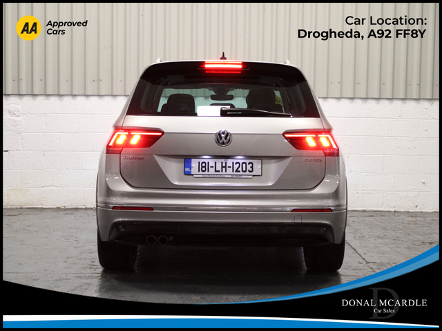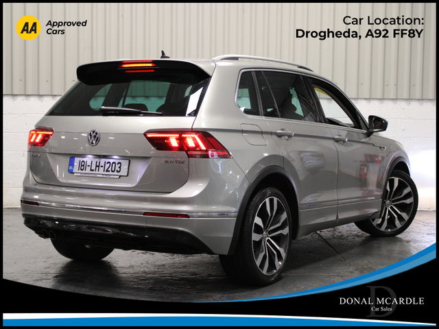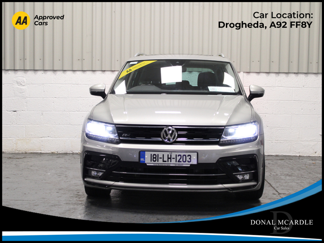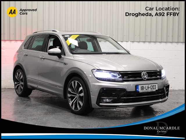 The 2018 Volkswagen Tiguan Highline 2.0 TDI 150HP is a premium SUV that combines strong performance, comfort, and practicality. Powered by a 2.0L TDI diesel engine producing 150HP with a 6-speed manual gearbox, it offers a smooth and efficient driving experience while maintaining excellent fuel economy. The Highline specification provides a high level of equipment and a refined interior, featuring quality materials and advanced technology designed for comfort and convenience. With its spacious cabin, generous boot space, and elevated driving position, the Tiguan is perfect for families or anyone needing a versatile and reliable SUV. Stylish on the outside and well-equipped inside, the Volkswagen Tiguan delivers the perfect balance of performance, practicality, and everyday usability. For more details and to organise a test drive or any other questions please give Barry a call on 0879137581 we are always happy to help in any way that we can!!! At Donal McArdle Car Sales you can buy with confidence, with over 20 years experience in the motor trade we have built up a superb reputation for high quality cars and first class customer service. All our AA Approved Cars come with a 1YEAR AA Membership with full roadside assistance, 101 point inspection. We can source any car, colour or spec you desire. All our cars come VRT Paid on irish plates with a cartel report and will be delivered to you with a comprehensive warranty. For out of hours please call Barry on 0879137581. Finance arranged! We are an authorised credit intermediary for AIB Finance, Close Brothers, First Auto Finance and Bluestone finance. Call Barry on 0419844221/0879137581 to arrange a test drive today. Opening hours Mon Fri 9am 530pm. Sat 10am 3pm. Viewing anytime by appointment. Central Locking, Electric Windows, Airbag, Fog Lamps, Privacy Glass, Centre Armrest, Multi-function steering wheel, Roof Rails, Satellite Navigation, Traction Control, Metallic Paint, Parking Sensors, Bluetooth, EBD, Isofix, Active Safety Braking / City Brake / Collision Alert, Stop/Start Button, External Devices Connectivity, Cup holders, Remote boot/hatch/rear door release, Stability control