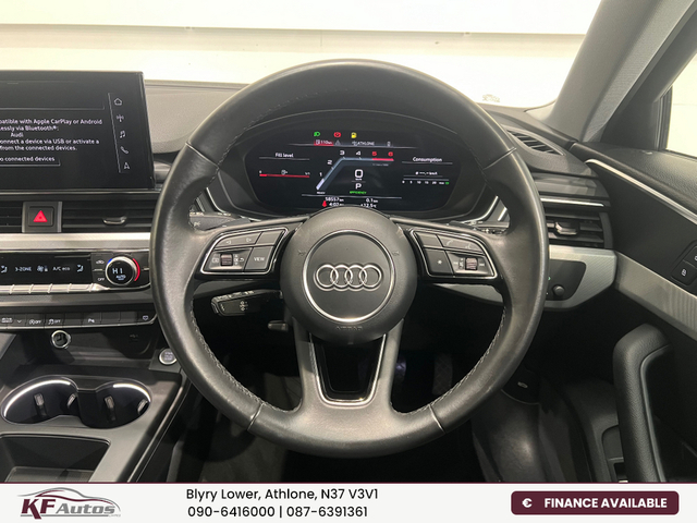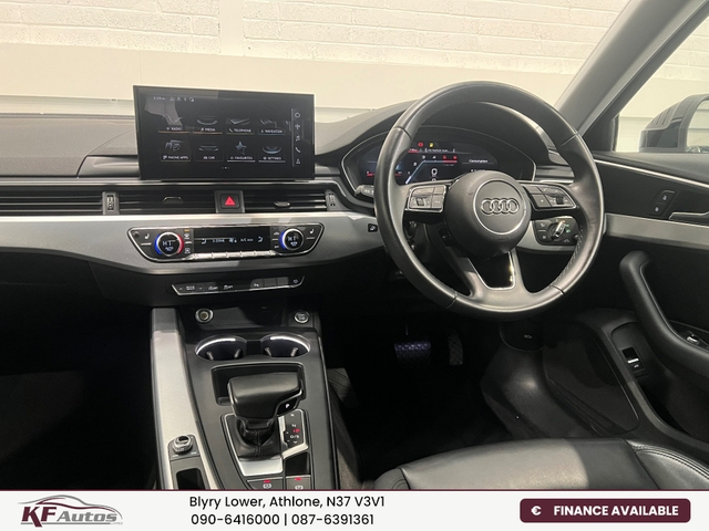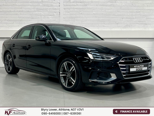 2022 Audi A4 SE Limousine 30 2.0TDI 136bhp 4dr S-Tronic Auto - 221 Reg €34,995 Straight Sale Price €35,995 Trade In Price - Finished in Mythos Black Metallic - Full Black Leather Interior Leather - 18'' Factory Fitted Alloy Wheels - Front and Rear Parking sensors - Reversing Camera - Multifunctional Steering Wheel - Paddle Shift - Heated Front Seats - Dual Climate Control - Virtual Cockpit - DAB Radio / Bluetooth / Sat Nav Apple / Android Car Play - All Four Electric Windows - Electric Door Mirrors - Heated Door Mirrors - Retractable Door Mirrors - Lane Assist - Auto Lights - Auto Wipers - Cruise Control - Bluetooth Phone & Media Connection - AUDI Drive Mode Select - ISOFIX Child Seat Points - Plus Loads More... Warranty Inclusive (Additional Warranty Available) Finance Available (12 - 60 Months) Service History Trade Ins Considered Indoor & Outdoor Showroom Contact our Sales Team TODAY on 090 641 6000 Or Contact GRAHAM after hours on 087 629 9715 - Central Locking, Electric Windows, Airbag, Centre Armrest, Multi-function steering wheel, Traction Control, Metallic Paint, Parking Sensors, Bluetooth, EBD, Isofix, Active Safety Braking / City Brake / Collision Alert, Stop/Start Button, External Devices Connectivity, Cup holders, Remote boot/hatch/rear door release, Stability control