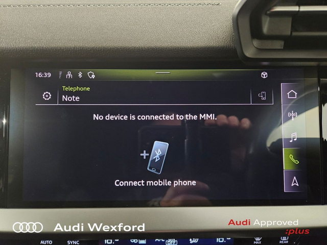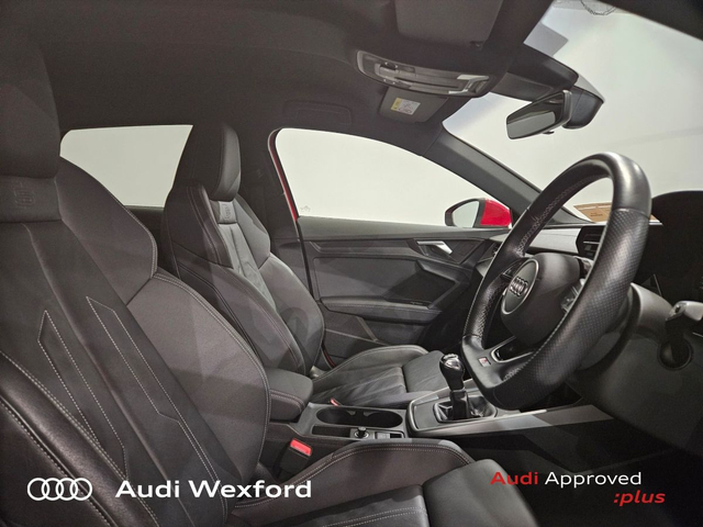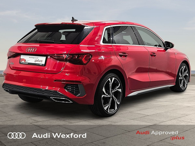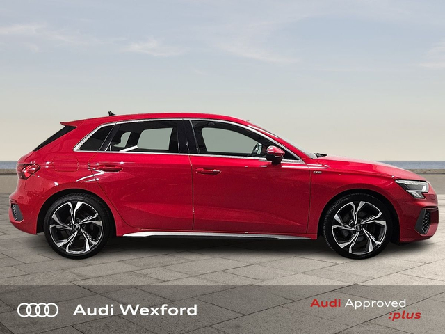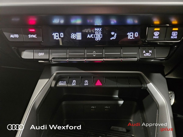 Audi A3 30 TDI 116HP S Line €303 p/m • Audi Music Interface • Audi Sound System • Bluetooth Interface • Audi Stop/Start • Auto Handbrake • Alloy Wheels • Metallic Paint • Space Saver Spare Wheel • Air Conditioning • Armrest • Electric Windows • Multi-Function Steering Wheel • Privacy Glass • Upholstery and Seats • ABS • ISO Fix • Multiple Airbags • USB • USB charging ports