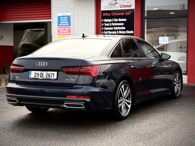 * 2021 AUDI A6 S Line 40 Auto JUST AFTER ARRIVING INTO STOCK * - Straight Sale Discount Price : €32,950 - Retail/Trade in Price : €33,950 STUNNING CAR FINISHED WITH A MASSIVE RANGE OF FEATURES INSIDE AND OUT INCLUDING - LEATHER INTERIOR - SLINE SEATS - HEATED SEATS - PARKING SENSORS - CRUISE CONTROL - APPLE CAR PLAY - ELECTRIC SEAT - REVERSE CAM - TOUCH SCREEN MULTI MEDIA - MULTI FUNCTIONAL STEERING WHEEL AND MUCH MORE. FINISHED IN STUNNING BLUE. At Conor Cassidy Cars, our mission is simple: to offer top-quality cars at unbeatable prices. Each vehicle is meticulously inspected by our in-house service team. This includes: • A full service • Warranty • Complete vehicle preparation • Guaranteed NCT pass Safety, reliability, and customer satisfaction are at the heart of everything we do. We accept all trade-ins, which can be redeemed against your new car purchase. As authorized credit intermediaries, we arrange flexible financing with: • AIB • Bank of Ireland • Lombard • Close Brothers • And many more to ensure you get the best available rate. Same-Day Finance Approval • 95% success rate • Weekly payments tailored to your deposit or trade-in Contact our finance manager to explore your payment options today! Additional Benefits Include: • Warranties ranging from 6 to 24 months • A full Cartell history report for peace of mind • Comprehensive service history from new With every car purchase, we guarantee: • A full service • Professional interior and exterior detailing • VRT to the buyer’s county • A new 2-year NCT Why Choose Conor Cassidy Cars? • Nationwide Warranty • Nationwide Delivery • Flexible Financing Options • Trade-Ins Welcome Our Accolades: • All-Ireland Accredited Business • Fastest Growing Used Car Dealership in Connacht • Award-Winning Social Media (2020, 2024) • Best Online Marketing in Connacht (2021) • All-Ireland Winner of “Best Online Marketing” (2021) • Best Online Presentation in Connacht (2023) SIMI-Approved Dealer Buying from a SIMI-accredited member ensures total peace of mind when purchasing a used car. Our reputation is built on trust, performance, and customer satisfaction. Don’t just take our word for it—check out our glowing reviews! Get in Touch Today! Conor: (087) 284 0539 Darren: (086) 450 4943 Pedro: (083) 460 0343 Office: (090) 662 8310 “WHERE QUALITY MEETS VALUE @ CCC.IE” Thank you for considering Conor Cassidy Cars. Located on Lanesborough Road in Roscommon, we’re here to help you find your dream car. Visit our showroom, give us a call, or click the inquiry link to connect with our team. Bluetooth,Centre Armrest,Climate Control,Electric Mirrors,Electric Seats,Electric Windows,Electronic handbrake,Heated Seats,Air Conditioning,Alarm,Central Locking,Keyless Entry,Multiple Air Bags,Parking Sensors,Remote Central Locking,Traction Control,Alloy Wheels,Metallic Paint,Privacy Glass,Android Auto,Apple CarPlay,Multi-Function Steering Wheel,Selectable Drive Mode,Stop/Start Button,Touch Screen Infotainment System,Automatic Lights,Automatic Wipers,Daytime Running Lights,Front Parking Sensors,Isofix Points,Reversing Camera,Leather Upholstery,LED Headlights,USB Connection,Cup Holders