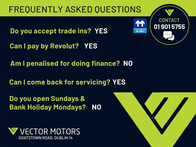AT VECTOR MOTORS WE OFFER OUR RENOWNED 12 MONTHS / 12,000 KM'S COMPREHENSIVE IN HOUSE WARRANTY - PLEASE ASK OUR SALES TEAM FOR MORE INFORMATION. BESPOKE FINANCE OPTIONS AVAILABLE. PLEASE VISIT OUR WEBSITE FOR OUR FINANCE CALCULATOR AND 24 HOUR ONLINE APPLICATION FORM. CALL TODAY FOR MORE INFORMATION AND A PERSONALISED VIDEO OF THE VEHICLE FINANCE ARRANGED TRADE INS WELCOME SIMI REGISTERED DEALERSHIP CHECK OUT GOOGLE REVIEWS TO SEE WHAT OUR CUSTOMERS SAY DID YOU KNOW WE ALSO BUY CARS UP TO 6 YEARS OLD WITH LESS THAN 100K KMS? FILL IN THE “SELL YOUR CAR” FORM ON OUR WEBSITE FOR A QUOTE. • Car History Checked • Finance Available