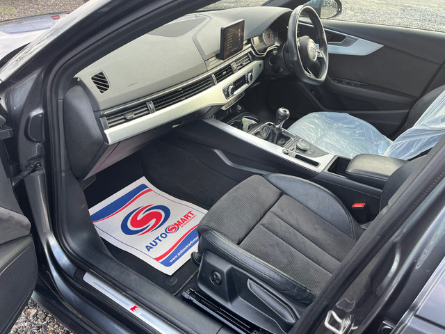 2018 (182) AUDI A4 2.0 TDI 190 BHP S-LINE 6 SPEED MANUAL. SPOTLESS A4 JUST INTO STOCK. IN IMMACULATE CONDITION INSIDE AND OUT. SERIOUSLY WELL MAINTAINED CAR. LADY OWNER LOCAL CAR WITH SERVICE HISTORY AND X2 KEYS PRESENT. €19,950 STRAIGHT SALE €20,950 TRADE IN PRICE TIMING BELT KIT AND WATER PUMP DONE. FULLY SERVICED FULLY VALETED WARRANTY FULL MOTORCHECK HISTORY REPORT FACTORY 190BHP MANUAL -19 S-LINE ALLOYS -HALF LEATHER/ALCANTARA S-LINE INTERIOR -LED DAYTIME RUNNING LIGHTS -LED HEADLIGHTS -FLAT BOTTOM STEERING WHEEL -FACTORY PRIVACY GLASS -MULTI FUNCTION STEERING WHEEL -CRUISE CONTROL -GLOSS BLACK LIP SPOILER ALL USUAL S-LINE EXTRAS. TOO MANY TO LIST. PLEASE CALL FOR FURTHER INFO OR TO ARRANGE A TEST DRIVE. VIEWING BY APPOINTMENT PLEASE. FREE NATIONWIDE DELIVERY AVAILABLE. CALL JORDAN ON 0874020692 OR CALL JAMES ON 0876173699 Central Locking, CD Player, Electric Windows, Airbag, Cruise Control, Centre Armrest, Multi-function steering wheel, Satellite Navigation, Traction Control, Metallic Paint, Parking Sensors, Bluetooth, EBD, Isofix, Apple Car Play, Android Auto, Active Safety Braking / City Brake / Collision Alert, Stop/Start Button, External Devices Connectivity, Cup holders, Remote boot/hatch/rear door release, Stability control