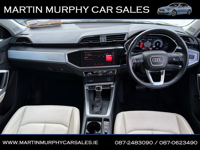 2022 AUDI Q3 SPORTBACK 2.0 TDI 150 BHP AUTO - Irish supplied car from new - One previous owner - Full Audi service record - Timing belt replaced - Finance available - Trade ins accepted - Dealer warranty - Full leather interior - Heated seats - Digital cockpit - Push button start - Drive mode selection - Two keys - Air con MARTIN MURPHY CAR SALES, KILKEARY, NORWOOD NENAGH, CO TIPPERARY Central Locking, Electric Windows, Airbag, Rear Spoiler, Centre Armrest, Multi-function steering wheel, Traction Control, Metallic Paint, Parking Sensors, Bluetooth, EBD, Isofix, Active Safety Braking / City Brake / Collision Alert, Stop/Start Button, External Devices Connectivity, Cup holders, Remote boot/hatch/rear door release, Stability control