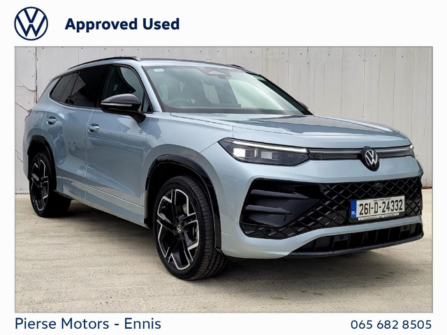 Volkswagen Tayron 1.5 TSI 204PS R-LINE 75 BLACK ED PHEV DSG • Daytime Running Lights • DSG • Multiple Airbags • Xenon Headlights • Immobilizer • Auto Handbrake • Auto Lights and Wipers • Centralised locking • Cruise Control • Hill Hold • Parking Assistance • Satellite Navigation • Stop and Start System • Air Conditioning • Armrest • Bluetooth Phone • Dual Climate-Control • Heated Seats • Leather Multi-functional Steering Wheel • Mobile Device Interface (media-in) • Split Fold Rear Seats • Touchscreen Stereo • USB • 20" Alloys • Electric Mirrors • Electric Windows • Privacy Glass • Spoiler • R-Line • Adaptive Cruise Control • City Emergency Braking System • App Connect • Parking Sensors Front And Rear • Rear View Camera • I.Q LIGHT - LED Matrix Headlights & Taillights