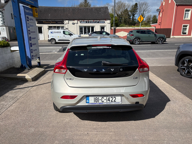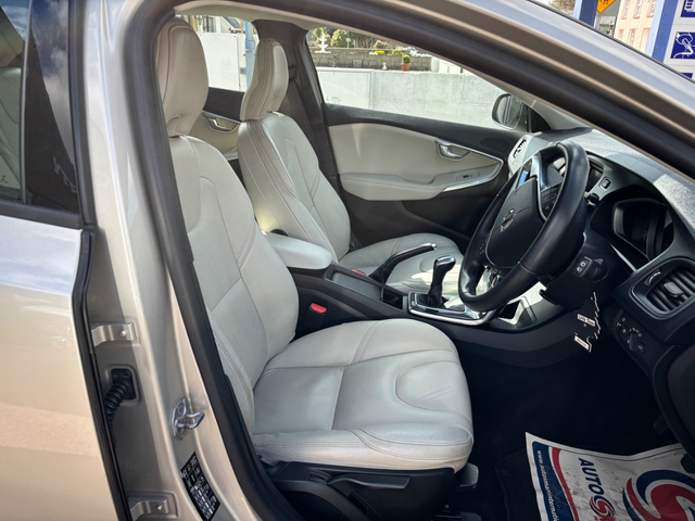 Volvo V40 2.0 Ltr Diesel, top spec. Low Mileage Volvo V40 in a fantastic spec. Car is in great condition. Full leather interior, service history, only 88k kms. Dealership warranty and NCT until 2028. Great finance options available with direct applications available through our website, over the phone or in our office. Call 024-95317 or Cian 087-9485023 / Dominic 087-2710860 for further details or to arrange a viewing. www.FOGARTYBROS.ie Central Locking, Electric Windows, Airbag, Rear Spoiler, Centre Armrest, Multi-function steering wheel, Traction Control, Anti-Theft System, Parking Sensors, Bluetooth, EBD, Isofix, Active Safety Braking / City Brake / Collision Alert, Stop/Start Button, External Devices Connectivity, Cup holders, Remote boot/hatch/rear door release, Stability control