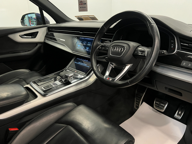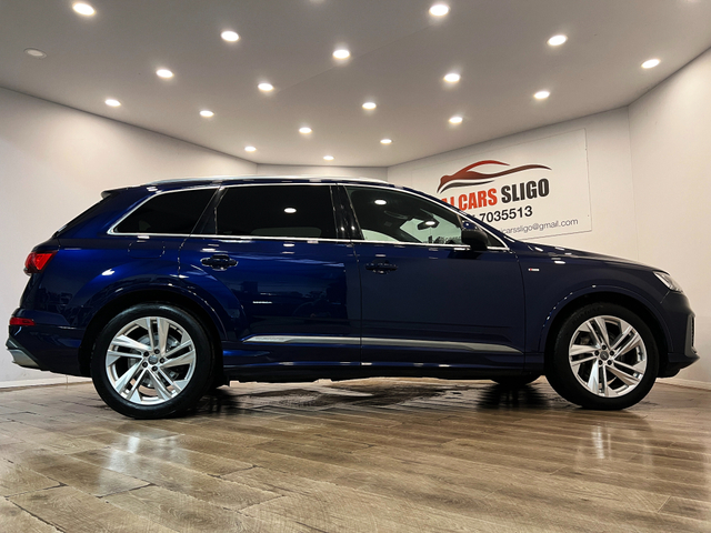 NEW MODEL AUDI Q7 S-LINE 50TDI QUATTRO 286BHP (2020) 2 owners from new Full Audi main dealer service history 75,000 miles Trade-ins welcome €62,950 with 12 months warranty included Finance available from €999 p/m with €13,000 deposit or trade-in APR from 7.9% Vehicle details Genuine Audi Q7 S-Line 50TDI Quattro 286BHP (NOT the 45TDI model) Automatic gearbox Finished in Navarra Blue Metallic High specification includes Adaptive air suspension sport Matrix LED headlights Audi Virtual Cockpit Valcona leather interior with embossed S-Line logos 7-seat configuration MMI Navigation Plus with MMI Touch Audi smartphone interface Audi Connect navigation & infotainment Audi sound system Ambient lighting package Privacy glass Reverse camera system Parking Aid Plus Cruise control with speed limiter Camera-based traffic sign recognition Audi Drive Select Lane departure warning Audi Pre Sense City Heated front seats Power front seats Leather multifunction sports steering wheel with shift paddles Frameless auto-dimming interior mirror Heated electric folding mirrors Roof rails Start/Stop system Hold Assist LED rear lights with dynamic indicators AJ Car Sales Sligo 071 930 4945 / 085 703 5513 www.ajcarssligo.com Central Locking, Electric Windows, Airbag, Cruise Control, Rear Spoiler, Privacy Glass, Centre Armrest, Multi-function steering wheel, Roof Rails, Satellite Navigation, Traction Control, Metallic Paint, Anti-Theft System, Parking Sensors, Bluetooth, EBD, Isofix, Apple Car Play, Android Auto, Active Safety Braking / City Brake / Collision Alert, Stop/Start Button, External Devices Connectivity, Cup holders, Remote boot/hatch/rear door release, Stability control