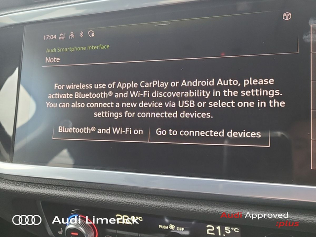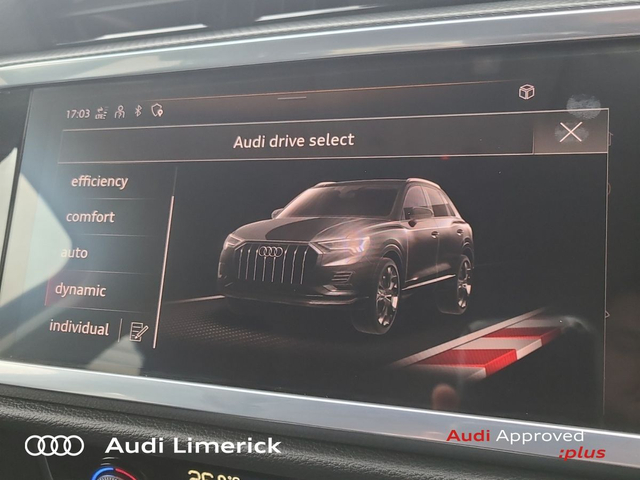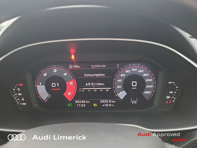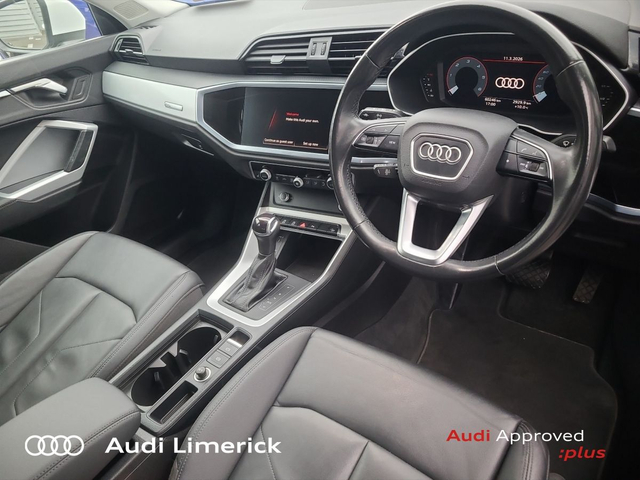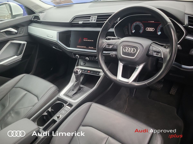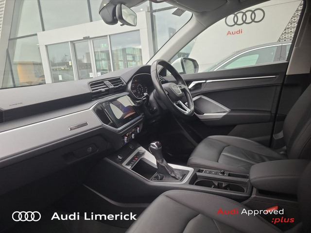 Audi Q3 35 TDI 150HP S Tronic SE • Audi Music Interface • Audi Sound System • Bluetooth Interface • Touchscreen Stereo • Audi Drive Select • Audi Stop/Start • Adaptive Cruise Control • Cruise Control • 18"Alloys • Body Coloured Door Mirrors • Metallic Paint • Spoiler • Ambient Lighting • Armrest • Climate Control • Dual Climate control • Electric Mirrors • Electric Windows • Front/Rear Floor Mats • Illuminated Centre Console Storage • Illuminated Vanity Mirror • Interior Lighting Pack • 3 Spoke Leather Multifunction S-Line Steering Wheel • Heated Seats • Leather Steering Wheel • Lumbar Support • ABS • Active Lane Assist • Alarm • Auto Lights and Wipers • Child Locks • Daytime Running Lights • Front and Rear Park Assist • Hill Descent Assist • Immobilizer • ISO Fix • LED Headlights • Light and Rain Sensor • Multiple Airbags • Power Boot Opening and Closing • Reverse Camera • Reversing Sensors • Remote Central Locking • Apple CarPlay • Audi Smartphone Interface • 7 Speed S-Tronic