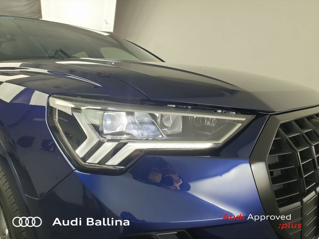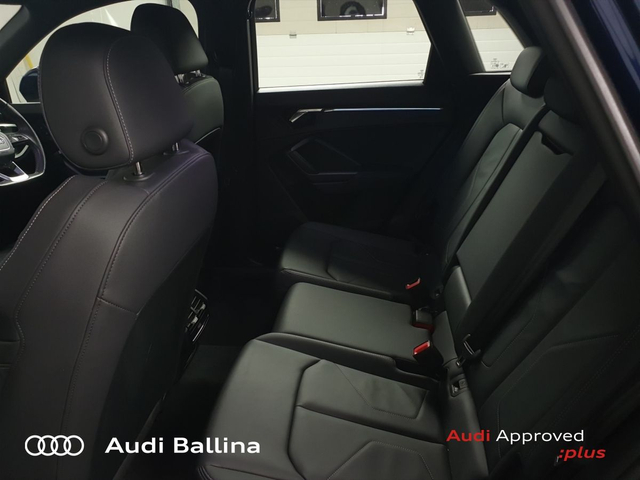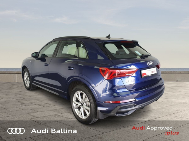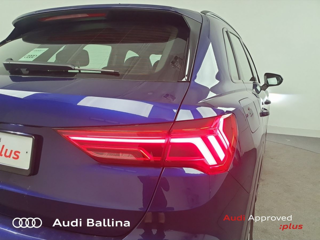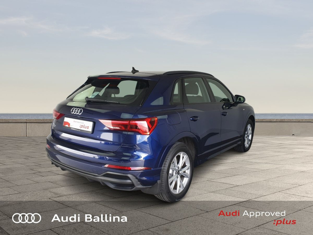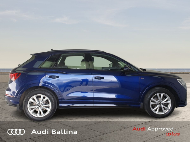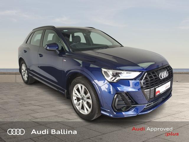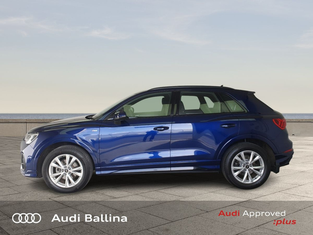 Now available at Connollys Audi Ballina, this stunning 2024 Audi Q3 is finished in NAVARRA BLUE METALLIC with a luxurious FULL BLACK interior. Stylish, refined and packed with the latest technology, the Audi Q3 SLINE delivers the perfect combination of performance, comfort and everyday practicality. This low-mileage example has been carefully inspected and prepared by our factory-trained technicians, offering excellent efficiency, smooth driving dynamics and premium interior quality expected from an Audi. This vehicle is supplied through the Audi Approved :plus Programme, providing added reassurance and complete peace of mind for its next owner. If you’re looking for a premium, well-equipped and beautifully presented vehicle, this Audi is an excellent choice. Buying from Connolly’s Audi Ballina gives you peace of mind with: • Fully inspected vehicles • Flexible finance packages available • Trade-ins welcome • Nationwide Delivery Available Available now at Connollys Audi Ballina. Contact our sales team today to arrange a test drive or personalised video tour. • Bluetooth Interface • DAB Digital Radio Module • Touchscreen Stereo • Audi Stop/Start • Cruise Control • Alloy Wheels • Black Styling Pack • Metallic Paint • S-Line Exterior Pack • Climate Control • 3 Spoke Leather Multifunction S-Line Steering Wheel • Heated Seats • Auto Lights and Wipers • Child Locks • Reverse Camera • Remote Central Locking • USB • Front and Rear Park Sensors • Voice control • Speed Limiter • Apple Carplay/Android Auto • Audi Connect • Audi Lane Assist • Audi Smartphone Interface • Audi Virtual Cockpit • Reverse Camera
