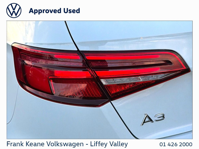 FRANK KEANE - Customer Driven Since '67. AUDI A3 S-LINE AUTOMATIC at Frank Keane Volkswagen Liffey Valley, We have this 2020 Audi A3 S-line Auto with only 19,056km Finished in White with Half Leather Interior. Specification that Includes • Half Leather, • Sat-Nav, • Heated Seats, • Rear View Camera, • Electric Seat Adjustment, • Parking Sensors Front & Rear, • Dual-Zone Climate Control, • Sport Seats, • Full S-Line Interior and Exterior, • Privacy Glass, • Alloy Wheels, • Climate Control, • Air-conditioning, • Electric Handbrake with Auto Hold, • Front and Rear Parking Sensors, • Automatic Lights, • Folding Mirrors, • ISOFIX Child Seat Mounts, • and much more! Please contact our Sales Team today for a Personalized Video of this Car, Digital Part Exchange Valuations and Tailored Funding Options to meet your needs on 01-4262000 or email [email protected] Frank Keane Volkswagen offers the highest levels of value and customer experience across both sales and service. Located at Liffey Valley Motor Mall, we ensure all our used vehicles are prepared to the highest of standards and come with a minimum of 12 months warranty. Call us 01-4262000 to arrange an appointment with our Sales Team. FRANKKEANEVOLKSWAGEN.IE