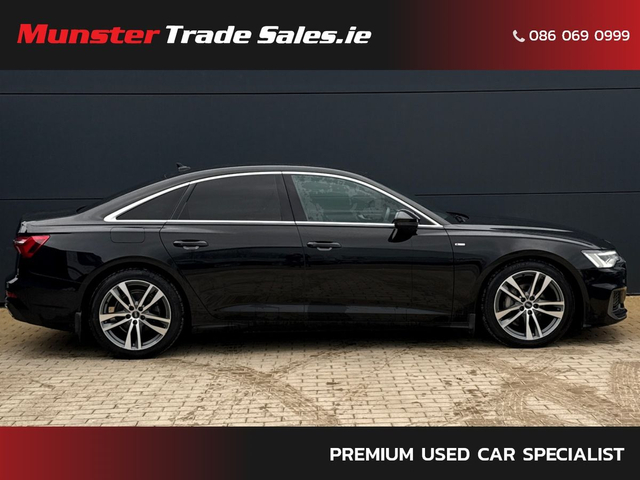 2021 Audi A6 40 TDI S Line S Tronic Myth Black Metallic | Matrix LED | Virtual Cockpit Plus Available now at Munster Trade Sales – Limerick A stunning 2021 Audi A6 S Line finished in Myth Black Metallic with Alcantara / Leather S Line Interior. This executive saloon combines sharp S Line styling, outstanding build quality and excellent efficiency from Audi’s 2.0 TDI Mild Hybrid engine paired with the smooth S Tronic automatic gearbox. One owner vehicle from new with only 59,000 miles. A beautifully specified example with high-end technology and premium comfort throughout. Key Features • S Line Exterior Package • Myth Black Metallic • 19” Graphite Grey Diamond-Cut Alloy Wheels • Sports Suspension • Privacy Glass • High Gloss Styling Package • Matrix LED Headlights • LED Rear Lights with Dynamic Indicators • Headlamp Wash System • Progressive Steering Interior & Comfort • Alcantara / Leather S Line Sports Seats • Heated Front Seats • Electric Front Seats with Driver Memory • Black Headlining • Ambient Interior Lighting Package • Brushed Aluminium Interior Trim • Stainless Steel Pedals • Illuminated S Line Door Sill Plates • Folding Rear Seats Technology & Connectivity • Audi Virtual Cockpit Plus • MMI Navigation Plus with Touch Response • Audi Smartphone Interface (Apple CarPlay / Android Auto) • Audi Phone Box Light (Wireless Charging) • Audi Connect Navigation & Infotainment • Audi Sound System • Digital Audio Broadcasting (DAB) • Rear View Camera • Front & Rear Parking Sensors Driver Assistance & Safety • Matrix LED Headlights • Audi Pre Sense Front • Lane Departure Warning • Cruise Control with Speed Limiter • Tyre Pressure Monitoring • Anti-Theft Alarm System Performance 2.0 TDI Mild Hybrid 204 PS S Tronic Automatic Transmission Smooth, refined and highly economical executive performance Condition & Preparation ? Fully inspected ? Professionally prepared ? Excellent condition throughout Munster Trade Sales – Limerick Eircode: V94 RKTO www.munstertradesales.ie Opening Hours: Mon–Fri: 9:00am – 8:00pm Saturday: 9:00am – 6:00pm Call or message today to arrange a viewing. • Full vehicle Service & inspection • Professionally valeted & Detailed • Car History Checked • Finance Available • 2 Remote keys