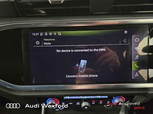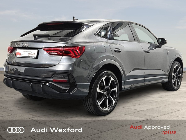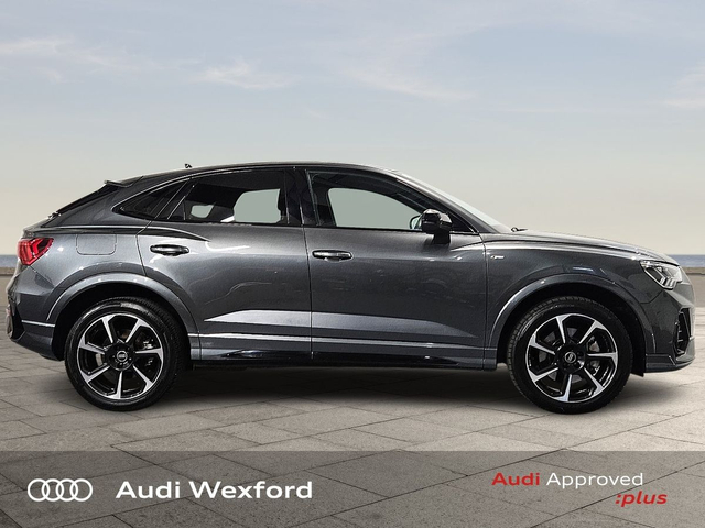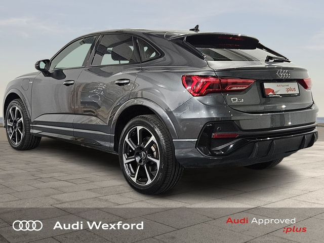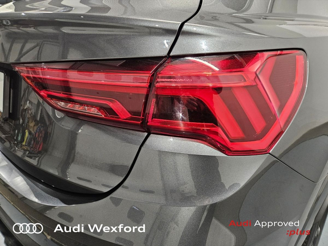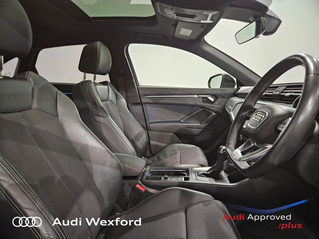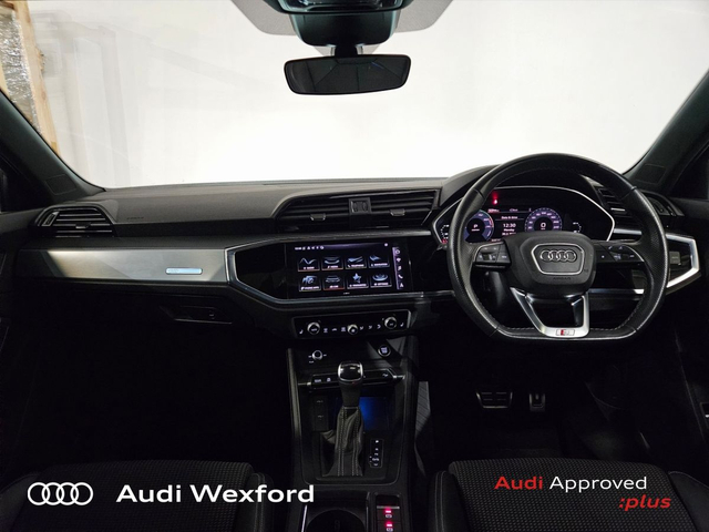 Audi Q3 45 TFSI E S Tronic S line Auto * High Spec + Sunroof * €406p/m • Audi Music Interface • Audi Sound System • Bluetooth Interface • Touchscreen Stereo • Audi Drive Select • Audi Stop/Start • Auto Handbrake • Cruise Control • Power Assisted Steering • Alloy Wheels • 19"Alloys • Black Styling Pack • Metallic Paint • S-Line Body Styling • Sunroof • Air Conditioning • Ambient Lighting • Armrest • Button Start-Stop • Electric Mirrors • Electric Mirrors Heated Memory • Electric Roof • Electric Windows • Multi-Function Steering Wheel • Onboard Computer • Privacy Glass • 3 Spoke Leather Multifunction S-Line Steering Wheel • Electrically Adjustable Seats • Heated Seats • Leather Interior • Leather Steering Wheel • ABS • Alarm • Child Locks • High Beam Assist • ISO Fix • Multiple Airbags • Reverse Camera • Reversing Sensors • USB • USB charging ports