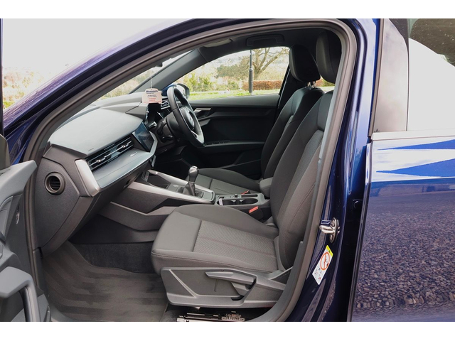 Audi A3 30 TFSI 110HP SE • Adjustable seats • Adjustable steering column/wheel • Air Conditioning • Bluetooth Phone • Climate Control • Electric Windows • Height adjustable drivers seat • Lumbar Support • Media Connection • Multi-Function Steering Wheel • Outside temperature meter • Rear headrests • USB • Windows front + rear electric • Car History Checked • Finance Available • Auto Handbrake • Auto Lights • Auto Wipers • Driver Airbag • Immobilizer • ISO Fix • Passenger Airbag • Rear Parking Sensors • Alloy Wheels • Hard-top • Leather Steering Wheel • Rear wiper • Tinted Windows