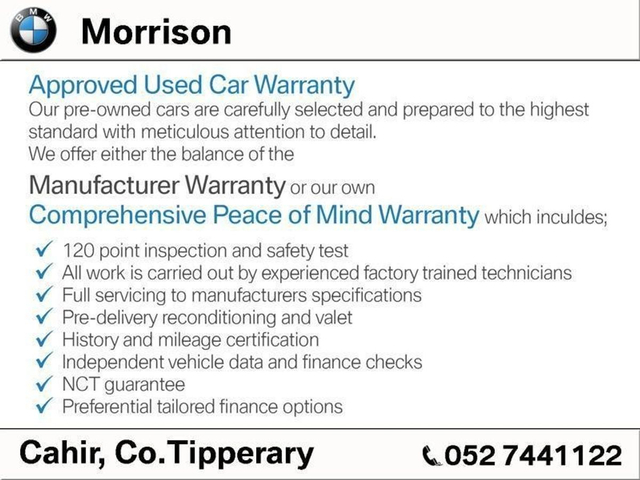 | Contact info: | Morrison BMW Cork Road Cahir County Tipperary Ph: 052-6150000 |