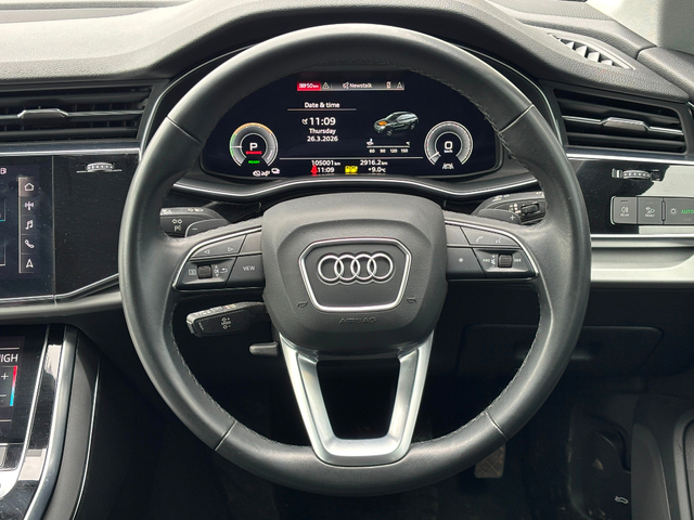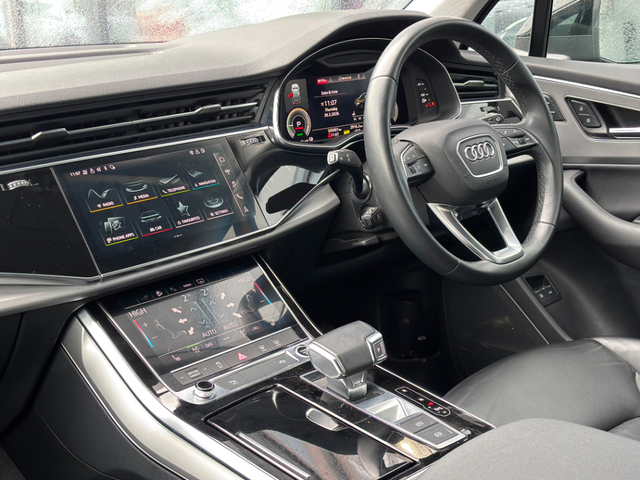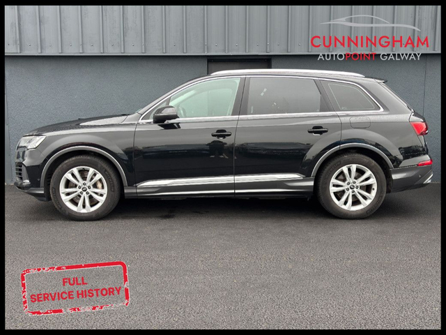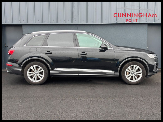 2022 (221) Audi Q7 55 TFSIe Sport Quattro in Mythical black metallic with Black full leather interior. The Q7 TFSI e Sport Quattro is a luxurious and sporty SUV that combines the benefits of a plug-in hybrid with the performance of a V6 engine and running costs of a smaller engine vehicle. It features a 335BHP and 600 Nm torque engine and, coupled to a 40BHP electric motors, develops a 375BHP total and an pure EV driving range of 30-40km. Features include 8-speed automatic transmission with four-wheel drive - 4-corner air suspension with electronic shock absorption control - Automatic slip-control differential - Navigation system - High - Rear view camera system - Leather-wrapped multi-function sports steering wheel - Power seats in front, driver seat with memory feature - Heated front seats - Cruise control system and speed limiter - Tailgate power closing - Lane departure warning - LED rear combination lamp, dynamic turn signals - Exterior mirrors with memory feature, auto-dimming, power-folding and heated - Bright roof rails - ISOFIX child seat system - Anti-theft alarm system. This car can be reserved on our website (google Cunningham Autopoint) for 48 hours allowing to time to travel and see the car with the assurance that the car will not be sold in the interim. Reservation fee is refundable if no deal is concluded or if you do not manage to come within the 48-hours. This car will be fully serviced prior to sale and comes complete with a 12 months / 20,000km mechanical warranty with 12 Months AA Premium Assistance. *Real world range is quoted from EV-database.org, an independent EV range monitoring website. Customers are advised to do their own research to further learn of a cars expected real-world versus claimed range. The EV-database website is well worth checking out as a source of extended information on all makes and models of Electric vehicles, both current models and previous models. To discuss this car further please call into our showroom, phone us on 091 383000 or send us an online enquiry - You can also reserve this car for 48 hours on our website - Due to fast stock turnaround we recommend phoning in advance of travelling to check if the car of your choice is available - We are an independently owned and operated dealership and our highly experienced team have over 100 years of combined motor industry experience.