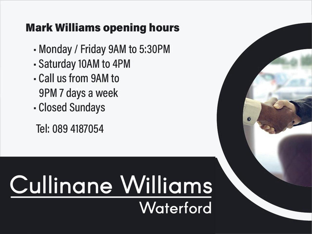 | Contact info: | Cullinane Williams Car Sales Cork Road County Waterford Ph: 086-8239426 / 086-8239427 |