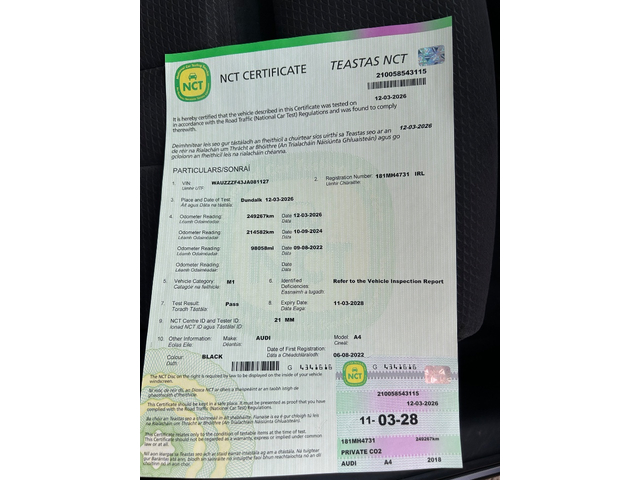 2018 Audi A4 2.0 Tdi Automatic gearbox S Line Black Edition One owner car 19" Genuine alloy wheels Full leather interior Fully loaded (Top Spec) 154k warranted miles Timing belt and w.pump done Will come fully serviced Fresh Nct 08/2028 Dealer warranty included (3 month) Finance applications through Lynchmotors.ie