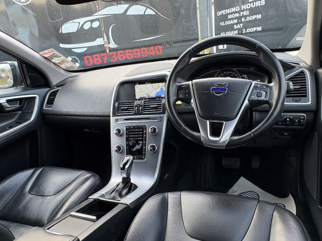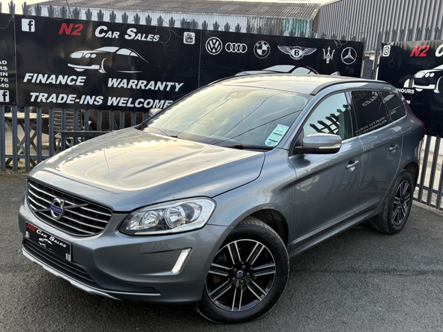 172 VOLVO XC60, 2.0 DIESEL AUTOMATIC, BEAUTIFUL JEEP ALL AROUND, LOW MILES, NEW NCT, GREAT SPEC SAT/NAV, FULL BLACK LEATHER, HEATED SEATS, PARKING SENSORS, USB, BLUETOOTH, AC,CLIMATE CONTROL, ONBOARD COMPUTER, ALLOY WHEELS, MULTI FUNCTIONING STEERING WHEEL, AUTO LIGHTS, WIPERS, WINDOWS AND MORE, COMES WITH WARRANTY, TRADE INS WELCOME. PLEASE BE AWARE NOT ALL CARS ARE KEPT ON SITE, SO PLEASE CALL AHEAD TO ARRANGE AN APPOINTMENT. -DELIVERY SERVICE AVAILABLE- N2 Car Sales offer a wide selection of second hand vehicles with a superb selection of brands. Multiple warranty packages available. Up to 12 months with optional extension. For more information please call Mobile 0873669940 Opening hours Monday to Friday 1000 am - 1800 pm Saturday 1000 am - 1400 pm Location Old North Road Coldwinters Dublin 11 D11P276 We are located 5 mins away from Dublin Airport. Central Locking, Electric Windows, Airbag, Cruise Control, Centre Armrest, Multi-function steering wheel, Roof Rails, Satellite Navigation, Traction Control, Metallic Paint, Anti-Theft System, Parking Sensors, Bluetooth, EBD, Isofix, Active Safety Braking / City Brake / Collision Alert, Stop/Start Button, External Devices Connectivity, Cup holders, Remote boot/hatch/rear door release, Stability control