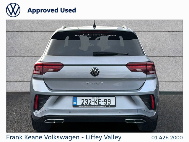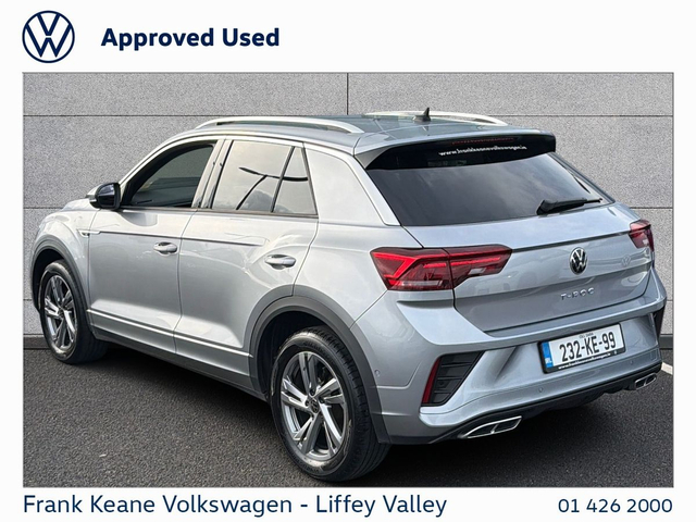 FRANK KEANE - Customer Driven Since '67. T-ROC R-LINE at Frank Keane Volkswagen Liffey Valley, We have this 2023 Volkswagen T-Roc R-Line with just 55,907km. Finished in Pyrite Silver Metallic with an Art Velour Cloth Seat Interior. Experience complete confidence with the Frank Keane Volkswagen Optional Pre-Owned Vehicle Protection Pack — including a 24-month warranty, 3-year Return to Invoice (RTI) investment protection, and 3-year paint, glass, and upholstery protection with LifeShine. Premium cover, expertly designed to protect your vehicle and your investment. To Learn more, speak to one of our Sales Team in Frank Keane Volkswagen Liffey Valley today. Specification that Includes • Rear View Camera, • Heated Seats, • R-Line Interior & Exterior. • 17” Valencia Alloy wheels, • Privacy Glass, • IQ Headlights, • LED Daytime Running Lights, • Rear View Camera, • Front and Rear Parking Sensors, • Art Velour Cloth Seats, • Adaptive Cruise Control, • Dual-Zone Climate Control, • Air-conditioning, • Folding Mirrors, • ISOFIX Child Seat Mounts, • USB-C Connectivity, • Automatic Lights, • Electric Handbrake with Auto Hold, • Digital Cockpit Display, • Siver Roof Rails, • Apple Car Play & Android Auto, • and much more! Please contact our Sales Team today for a Personalized Video of this Car, Digital Part Exchange Valuations and Tailored Funding Options to meet your needs on 01-4262000 or email [email protected] Frank Keane Volkswagen offers the highest levels of value and customer experience across both sales and service. Located at Liffey Valley Motor Mall, we ensure all our used vehicles are prepared to the highest of standards and come with a minimum of 12 months warranty. Call us 01-4262000 to arrange an appointment with our Sales Team. FRANKKEANEVOLKSWAGEN.IE